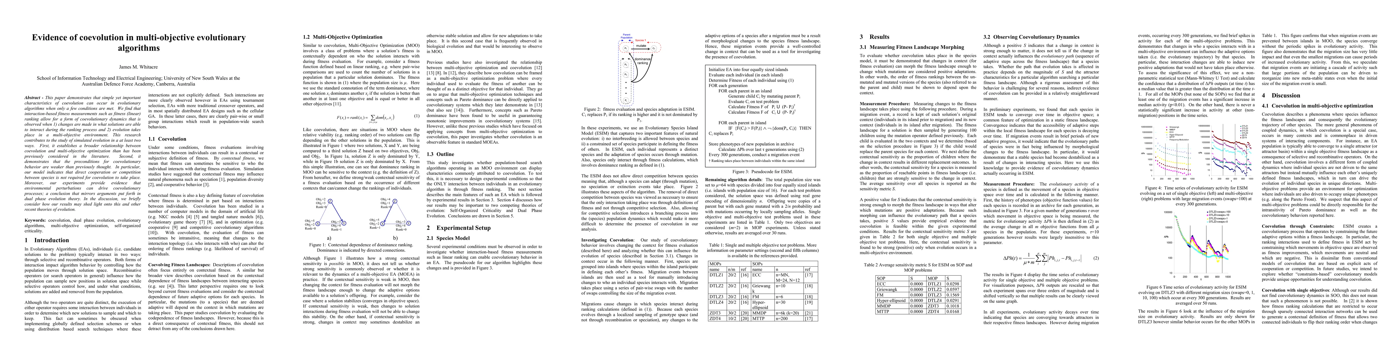 This paper demonstrates that simple yet important characteristics of coevolution can occur in evolutionary algorithms when only a few conditions are met. We find that interaction-based fitness measurements such as fitness (linear) ranking allow for a form of coevolutionary dynamics that is observed when 1) changes are made in what solutions are able to interact during the ranking process and 2) evolution takes place in a multi-objective environment. This research contributes to the study of simulated evolution in a at least two ways. First, it establishes a broader relationship between coevolution and multi-objective optimization than has been previously considered in the literature. Second, it demonstrates that the preconditions for coevolutionary behavior are weaker than previously thought. In particular, our model indicates that direct cooperation or competition between species is not required for coevolution to take place. Moreover, our experiments provide evidence that environmental perturbations can drive coevolutionary processes; a conclusion that mirrors arguments put forth in dual phase evolution theory. In the discussion, we briefly consider how our results may shed light onto this and other recent theories of evolution.