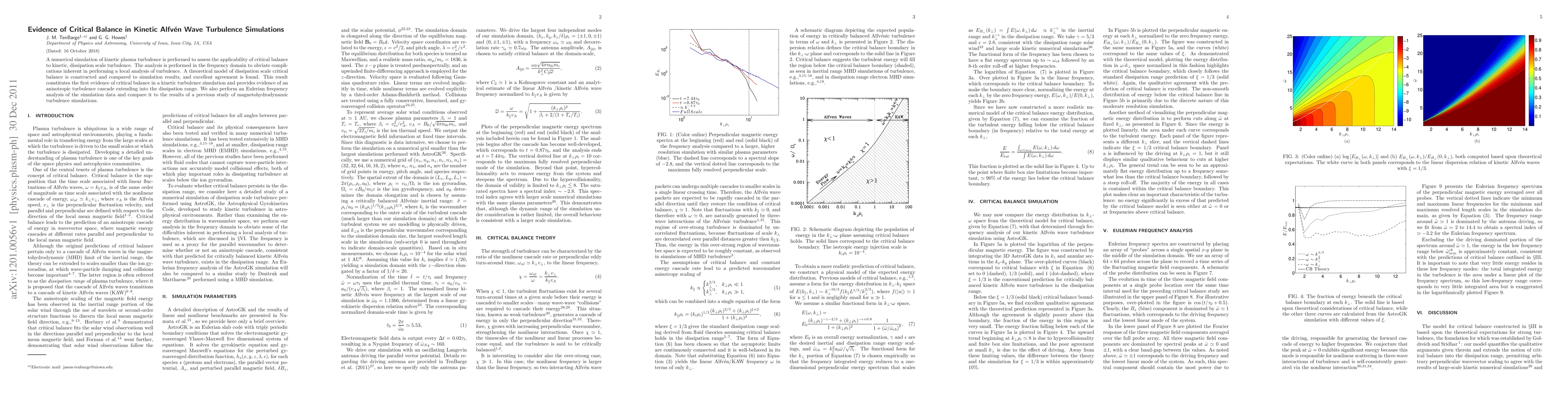 Researchers found evidence of critical balance in kinetic Alfven wave turbulence simulations, providing insight into anisotropic turbulence cascades and shedding light on kinetic plasma dynamics.