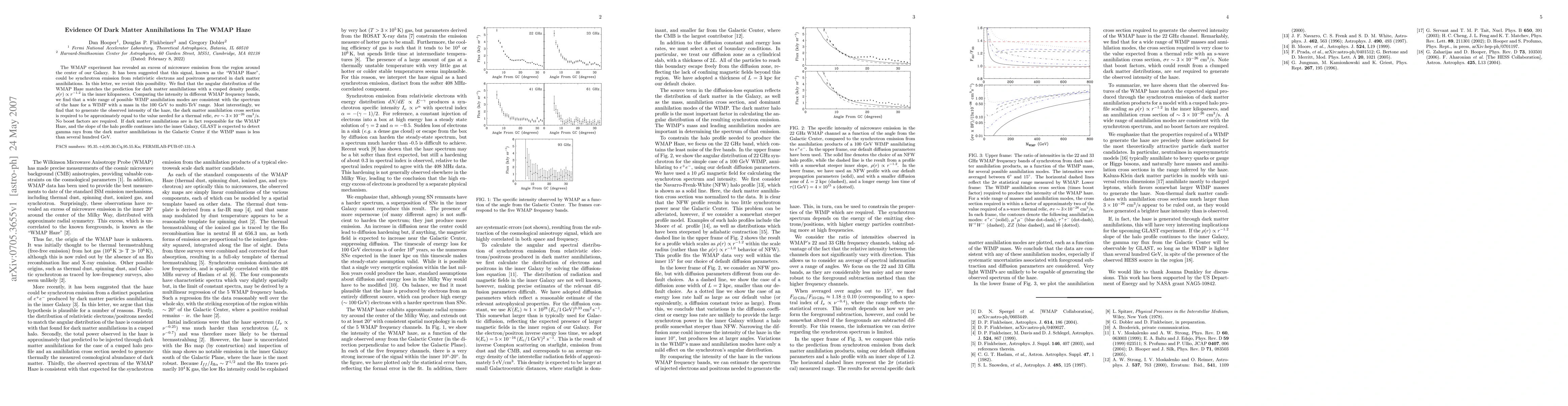 This paper investigates the WMAP Haze, an excess microwave emission from the Galactic Center, suggesting it could be synchrotron radiation from dark matter annihilations. The study finds that the angular distribution and the spectrum match predictions for dark matter annihilations with a cusped density profile, indicating a WIMP mass between 100 GeV to multi-TeV and a thermal relic annihilation cross-section.