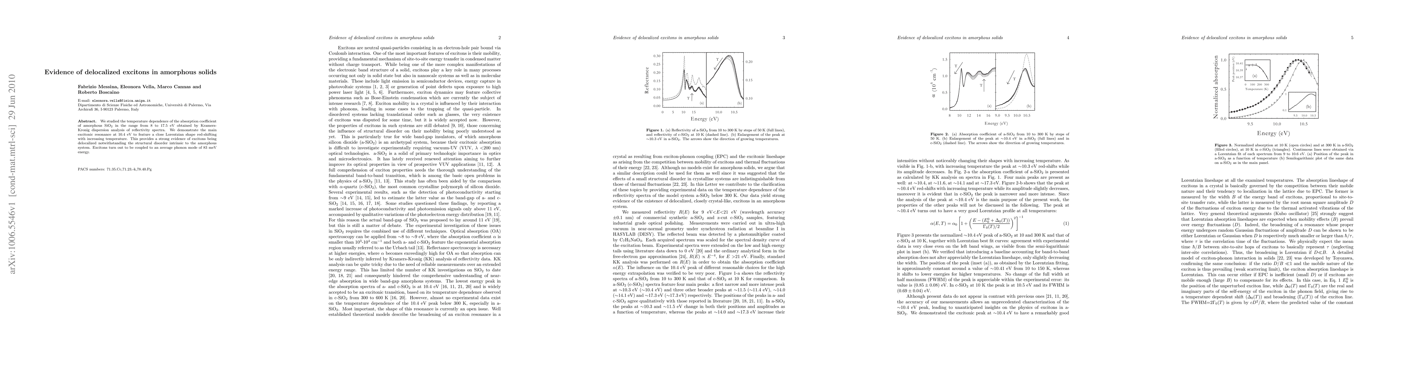 This study reveals that the main excitonic resonance in amorphous SiO$_2$ exhibits a Lorentzian shape that red-shifts with temperature, indicating delocalized excitons despite structural disorder. The excitons are also coupled to an average phonon mode of 83 meV.