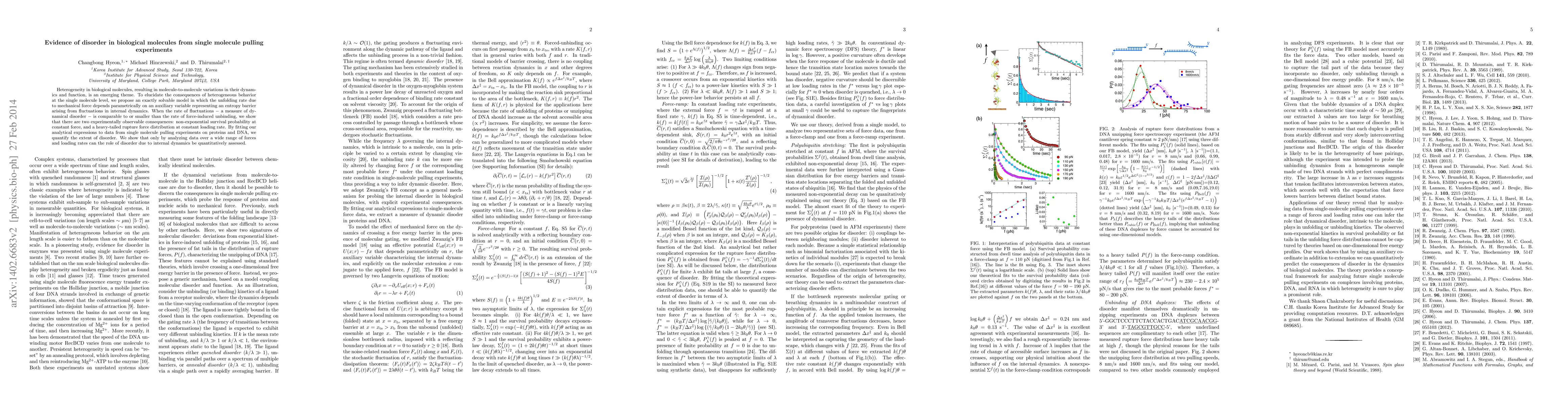 This paper proposes a model to explain heterogeneity in biological molecules through single molecule pulling experiments, showing that internal dynamics lead to non-exponential survival probabilities and heavy-tailed rupture force distributions. It demonstrates the necessity of analyzing data across various forces and rates to quantify the impact of dynamical disorder.