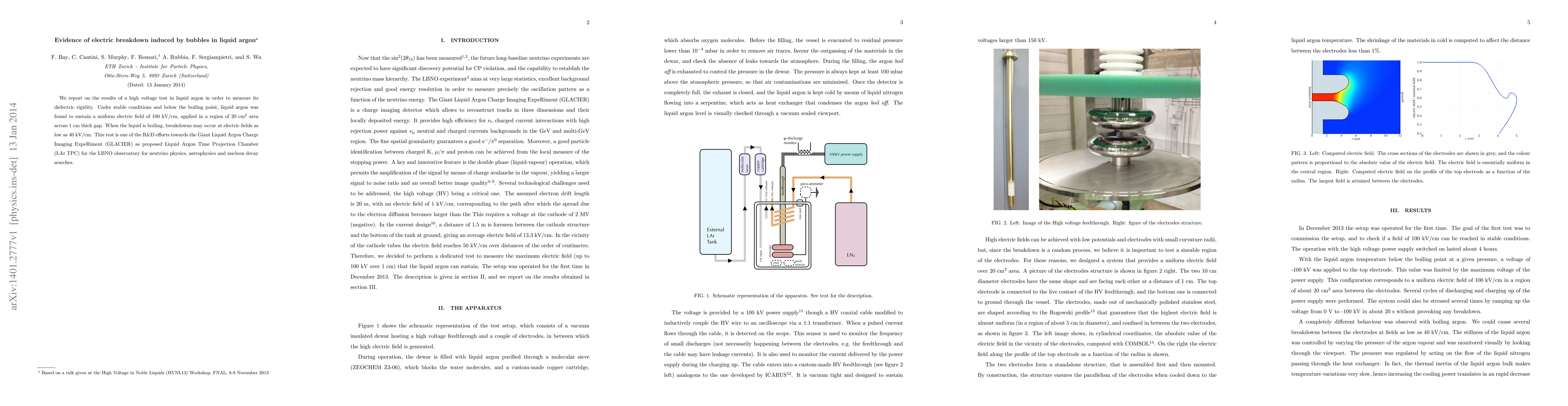 This study investigates the dielectric rigidity of liquid argon under high voltage, finding it can sustain 100 kV/cm without breakdown. However, boiling conditions lead to breakdowns at 40 kV/cm, highlighting the impact of bubbles on electric breakdown in the context of the GLACIER experiment.