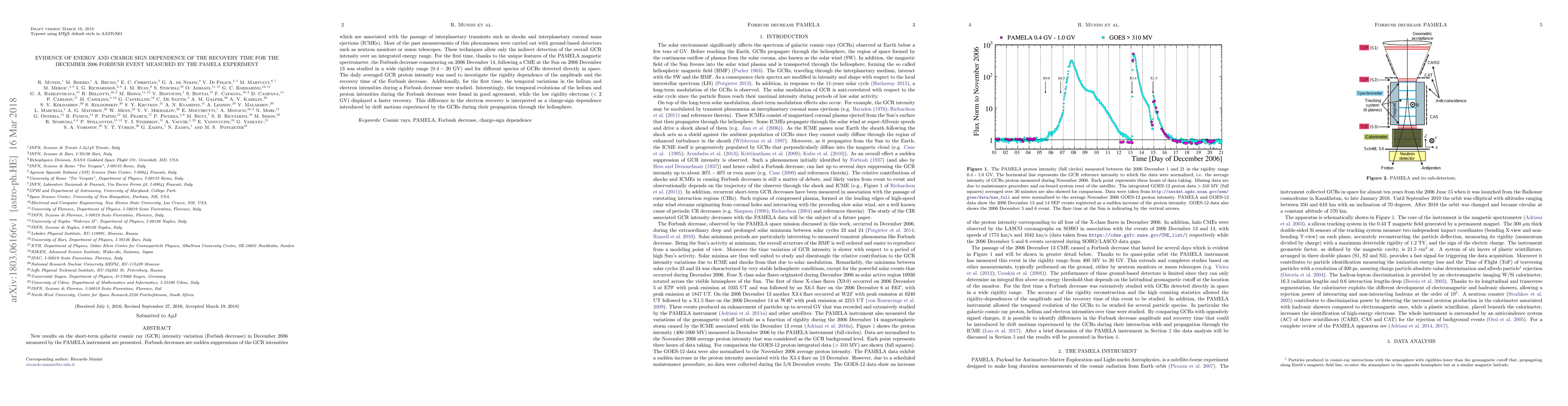 The PAMELA experiment measured the December 2006 Forbush decrease, revealing energy and charge-dependent recovery times for galactic cosmic rays. Low rigidity electrons (< 2 GV) showed faster recovery compared to protons and helium, indicating a charge-sign dependence likely due to drift motions in the heliosphere.