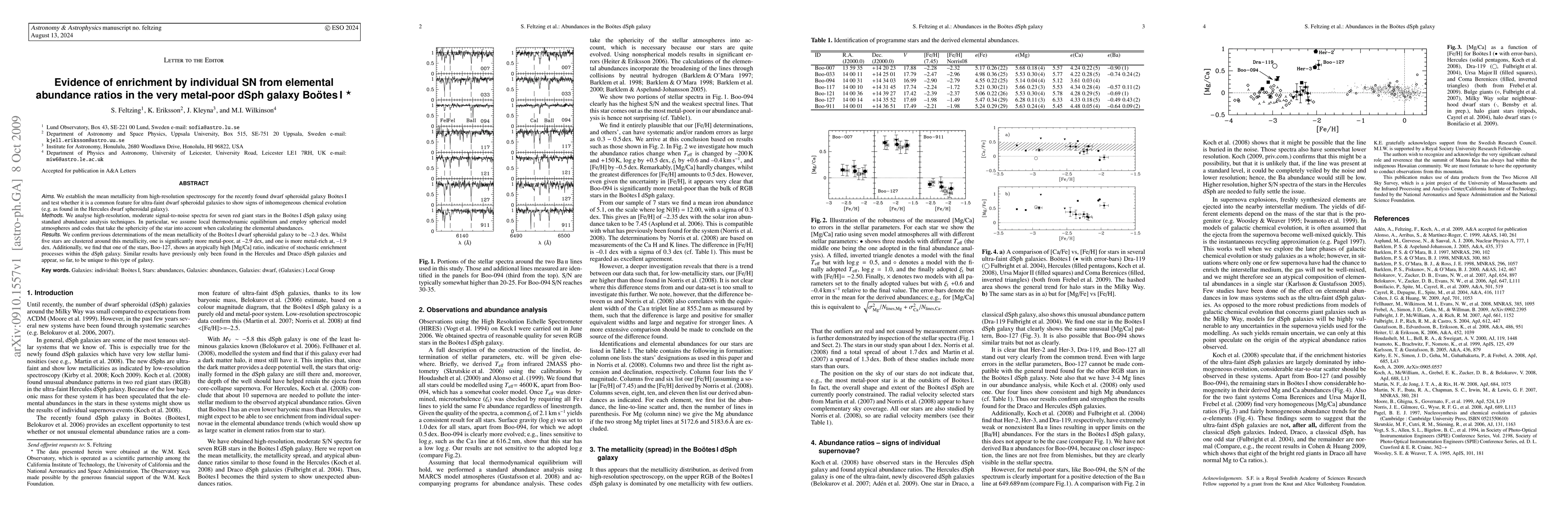 The paper presents a detailed analysis of elemental abundances in red giant stars of the Bootes I dSph galaxy, demonstrating the application of spherical model atmospheres and codes to account for stellar sphericity in abundance calculations.