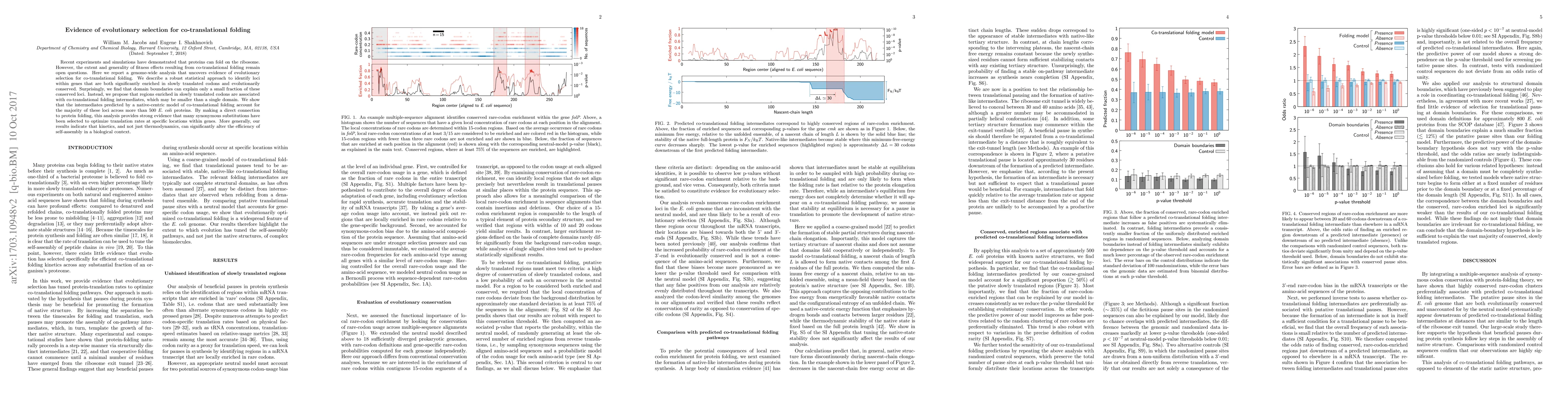 This study provides evidence of evolutionary selection for co-translational folding by identifying loci enriched in slowly translated codons that are evolutionarily conserved, suggesting that synonymous substitutions optimize translation rates to enhance folding efficiency. The findings indicate that co-translational folding intermediates, rather than entire domains, play a significant role in protein folding efficiency.