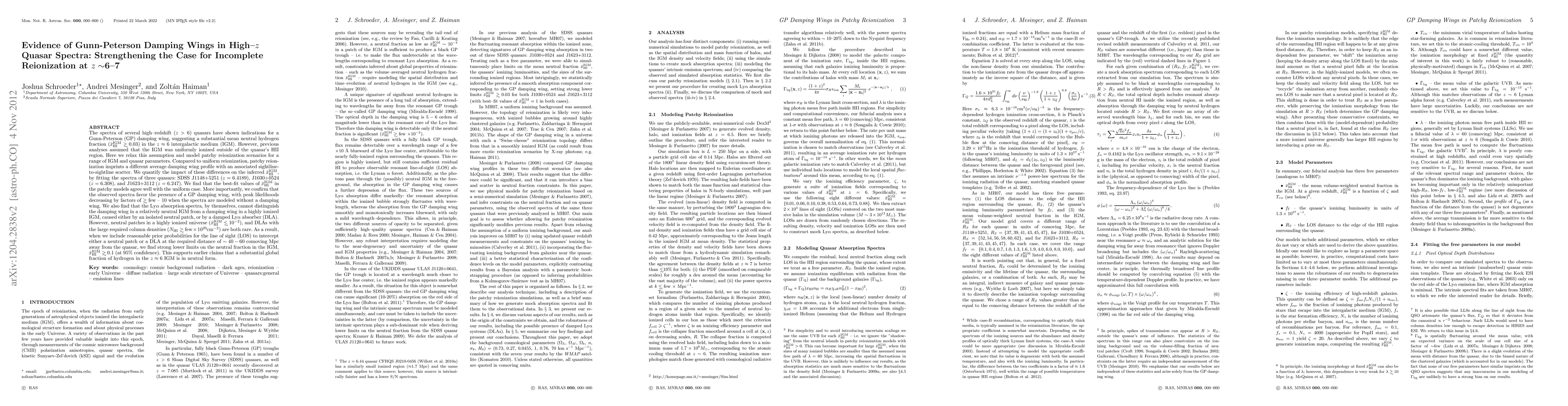 This research finds evidence for Gunn-Peterson damping wings in high-redshift quasar spectra, indicating a substantial mean neutral hydrogen fraction in the z ~ 6 intergalactic medium. The study models patchy reionization scenarios and finds strong lower limits on the neutral fraction, x_HI > 0.1 (at 95% confidence), supporting incomplete reionization at high redshifts.