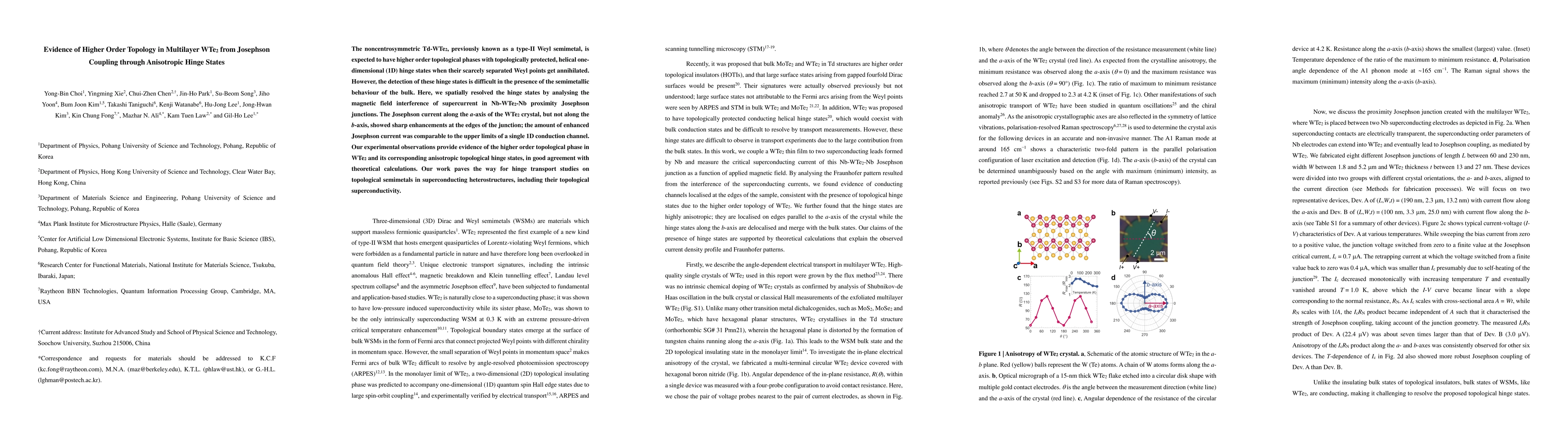 This paper reports the detection of higher order topological phases in multilayer WTe$_2$ through Josephson coupling, revealing anisotropic hinge states via supercurrent measurements in Nb-WTe$_2$-Nb junctions. The observed sharp enhancements in Josephson current along the a-axis confirm the presence of topologically protected 1D hinge states, aligning with theoretical predictions.