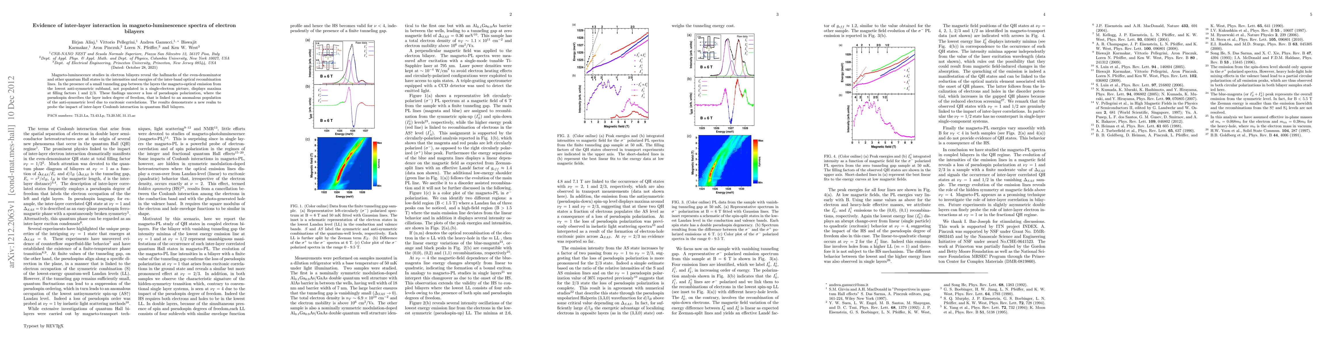 This paper investigates magneto-luminescence in electron bilayers, revealing quantum Hall states through inter-band optical recombination lines. The study finds maxima in emission from the lowest anti-symmetric subband, indicating loss of pseudospin polarization due to excitonic correlations and inter-layer Coulomb interactions.