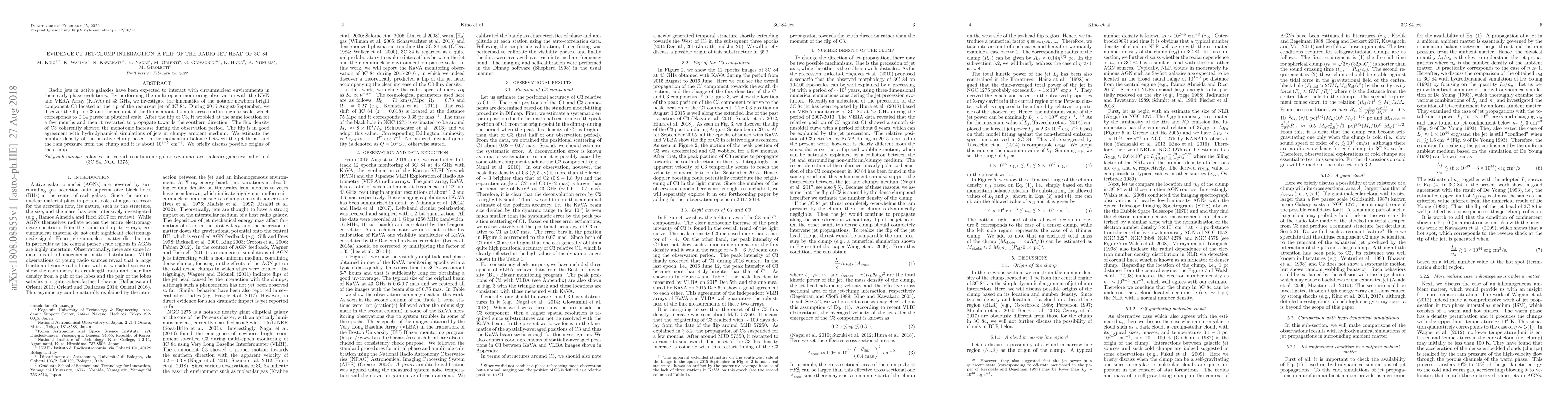 Researchers observe a flip in the radio jet head of galaxy 3C~84, revealing interaction with a clumpy ambient medium, which is consistent with hydrodynamical simulations.