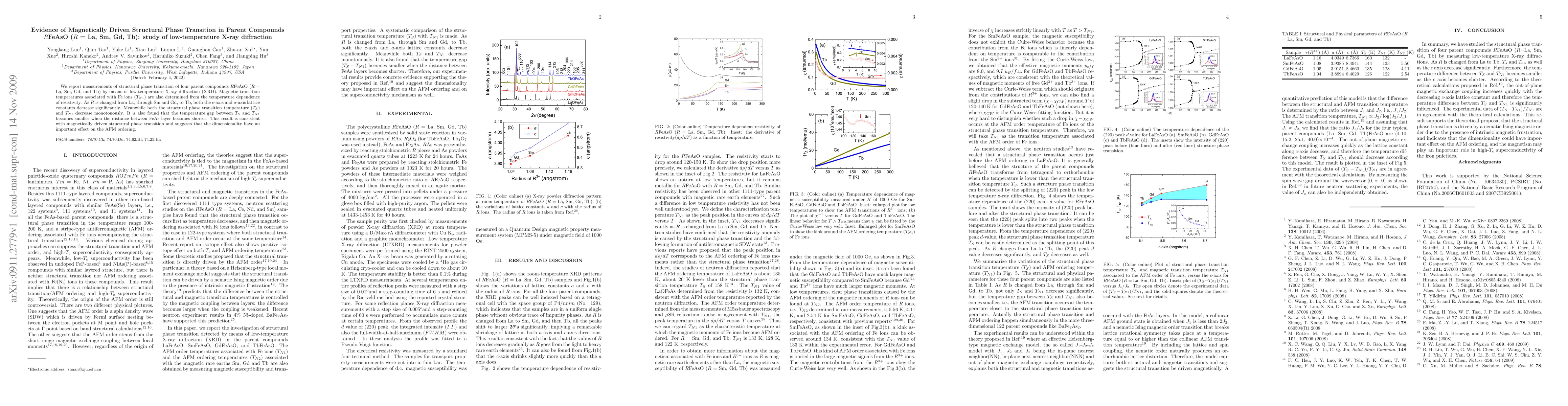 This study investigates the structural phase transition in four parent compounds RFeAsO (R = La, Sm, Gd, Tb) using low-temperature X-ray diffraction. The research finds a magnetically driven structural phase transition, with both the structural phase transition temperature and magnetic transition temperature decreasing as the lanthanide element changes, indicating dimensionality's influence on antiferromagnetic ordering.