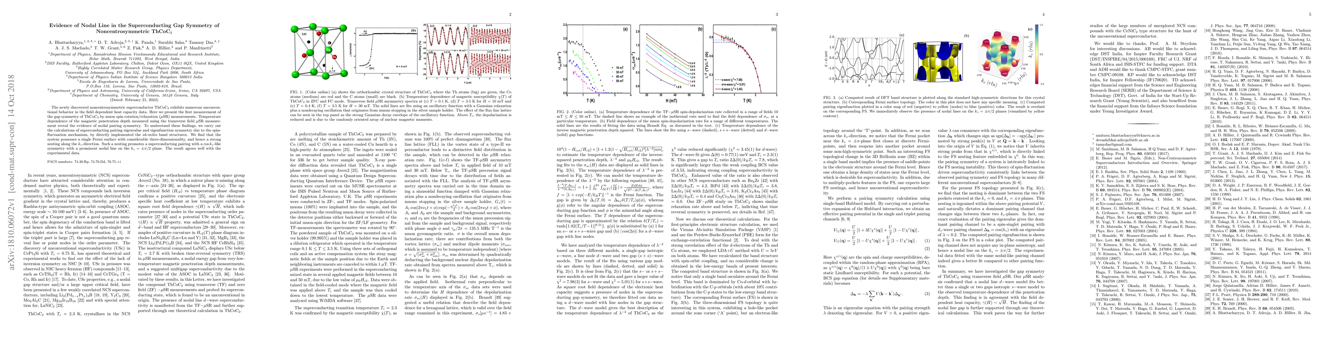 The newly discovered noncentrosymmetric superconductor ThCoC$_{2}$ exhibits numerous unconventional behavior in the field dependent heat capacity data. Here we present the first measurement of the gap symmetry of ThCoC$_{2}$ by muon spin rotation/relaxation $(\mu$SR) measurements. Temperature dependence of the magnetic penetration depth measured using the transverse field $\mu$SR measurement reveal the evidence of nodal pairing symmetry. To understand these findings, we carry out the calculations of superconducting pairing eigenvalue and eigenfunction symmetry due to the spin-fluctuation mechanism, by directly implemented the {\it ab-initio} band structures. We find that the system possesses a single Fermi surface with considerable three-dimensionality, and hence a strong nesting along the $k_z$-direction. Such a nesting promotes a superconducting pairing with a $\cos{k_z}$-like symmetry with a prominent nodal line on the $k_z=\pm\pi/2$ plane. The result agrees well with the experimental data.