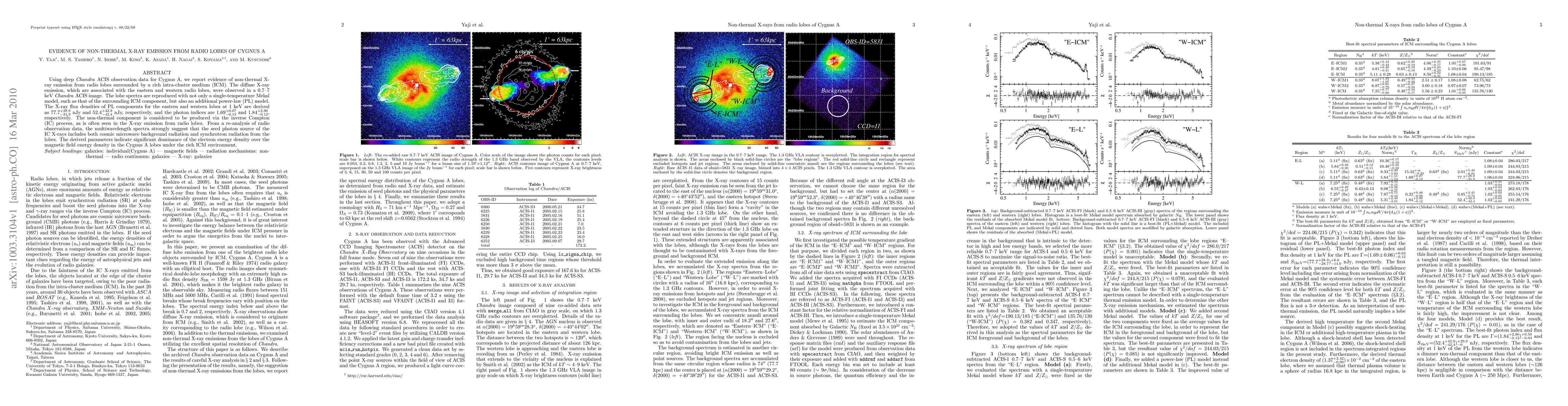 This paper reports non-thermal X-ray emission from the radio lobes of Cygnus A using Chandra ACIS data, suggesting an inverse Compton process. The X-ray emission is modeled with both thermal and power-law components, indicating a significant electron energy density dominance over magnetic fields in the lobes.