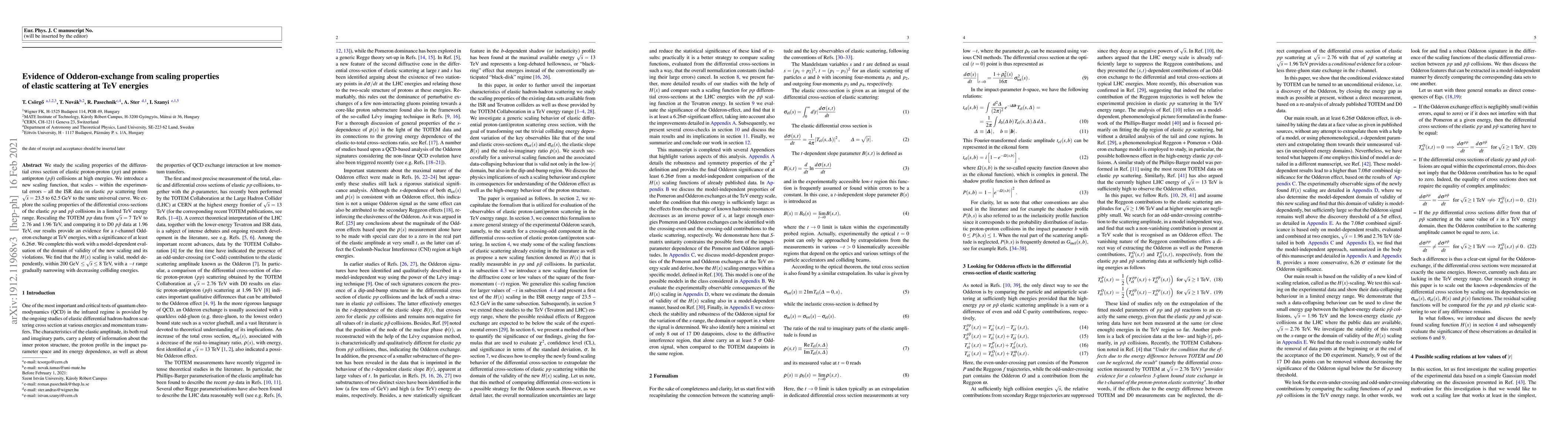 This paper presents evidence for Odderon-exchange in elastic proton-proton and proton-antiproton scattering at TeV energies through a new scaling function that unifies ISR data. The findings, with a significance of 6.26σ, suggest a $t$-channel Odderon exchange in the TeV energy range.