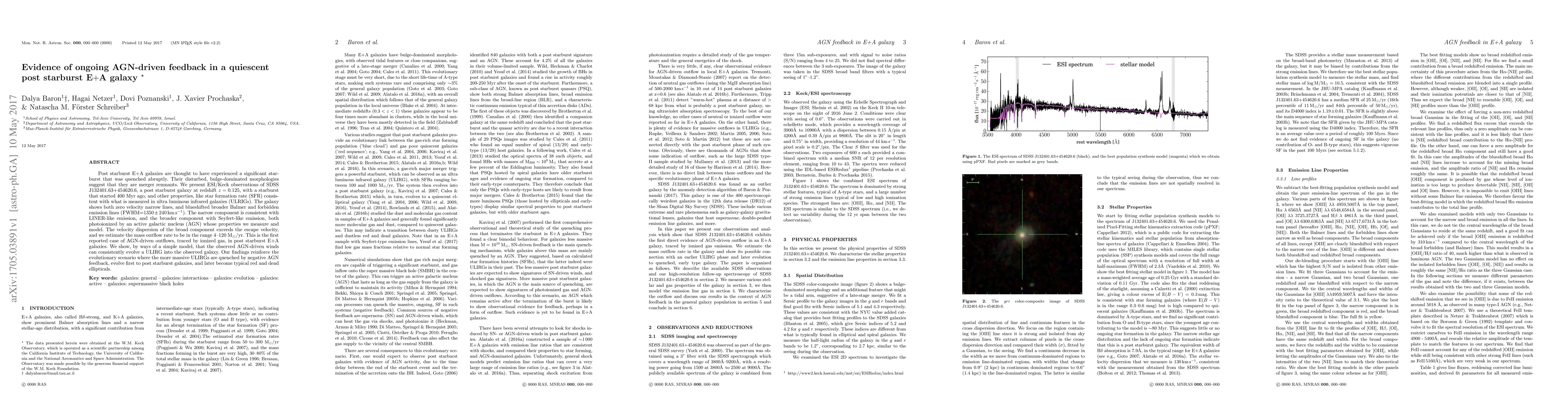 This paper presents evidence of AGN-driven feedback in a quiescent post starburst E+A galaxy, SDSS J132401.63+454620.6, showing ionized gas outflows with a mass outflow rate of 4-120 Mo/yr. The findings support the evolutionary model where massive ULIRGs transition to post starburst galaxies through AGN quenching before becoming typical red ellipticals.