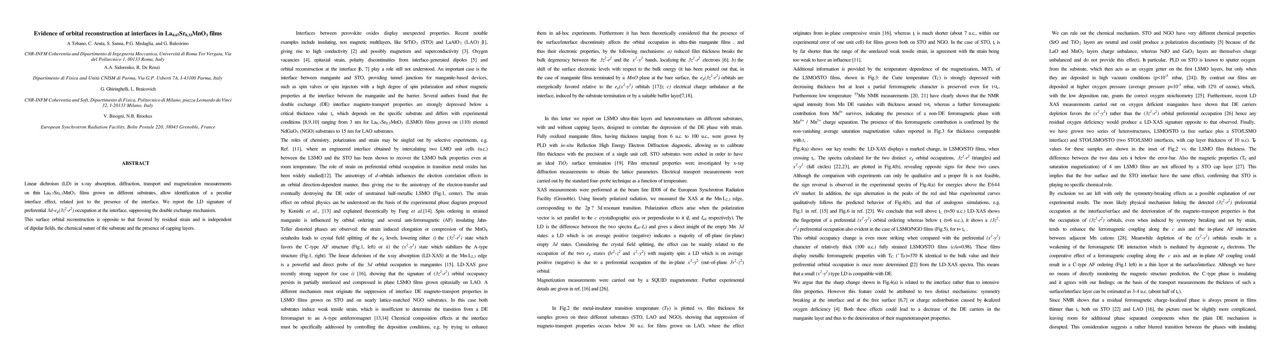 Electronic properties of transition metal oxides at interfaces are influenced by strain, electric polarization and oxygen diffusion. Linear dichroism (LD) x-ray absorption, diffraction, transport and magnetization on thin La0.7Sr0.3MnO3 films, allow identification of a peculiar universal interface effect. We report the LD signature of preferential 3d-eg(3z2-r2) occupation at the interface, suppressing the double exchange mechanism. This surface orbital reconstruction is opposite of that favored by residual strain and independent of dipolar fields, chemical nature of the substrate and capping.