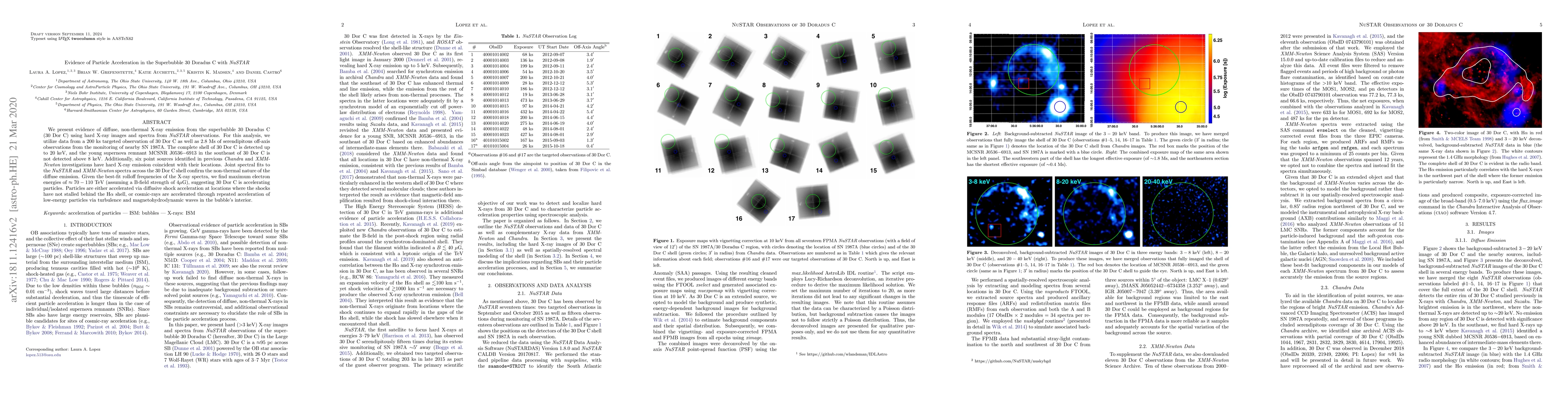 The 30 Doradus C superbubble shows evidence of particle acceleration via diffusive shock acceleration and turbulence, resulting in maximum electron energies of 70-110 TeV.
