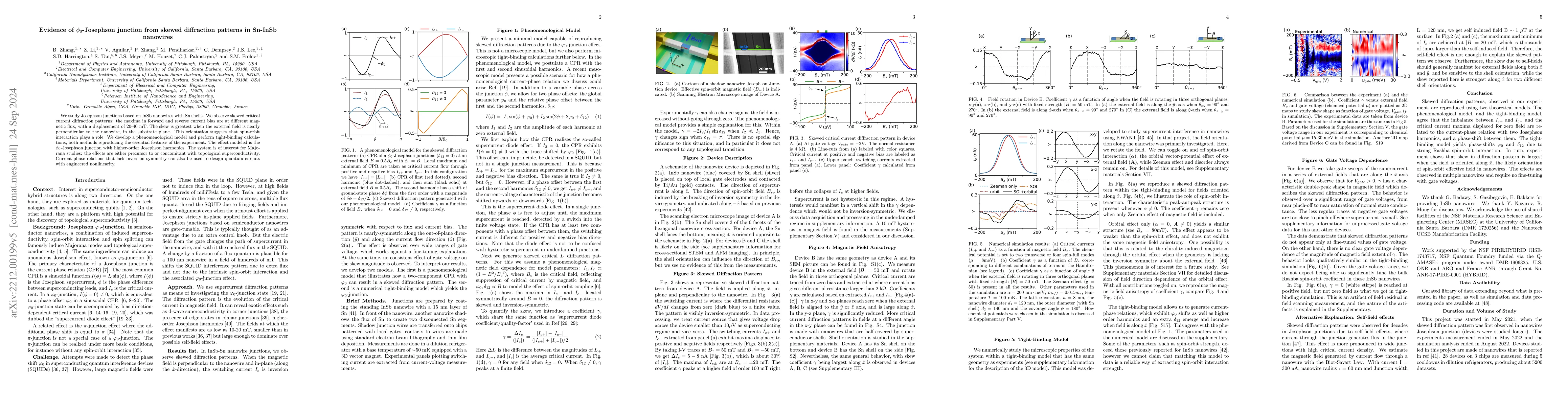 We study Josephson junctions based on InSb nanowires with Sn shells. We observe skewed critical current diffraction patterns: the maxima in forward and reverse current bias are at different magnetic flux, with a displacement of 20-40 mT. The skew is greatest when the external field is nearly perpendicular to the nanowire, in the substrate plane. This orientation suggests that spin-orbit interaction plays a role. We develop a phenomenological model and perform tight-binding calculations, both methods reproducing the essential features of the experiment. The effect modeled is the $\phi$0-Josephson junction with higher-order Josephson harmonics. The system is of interest for Majorana studies: the effects are either precursor to or concomitant with topological superconductivity. Current-phase relations that lack inversion symmetry can also be used to design quantum circuits with engineered nonlinearity.