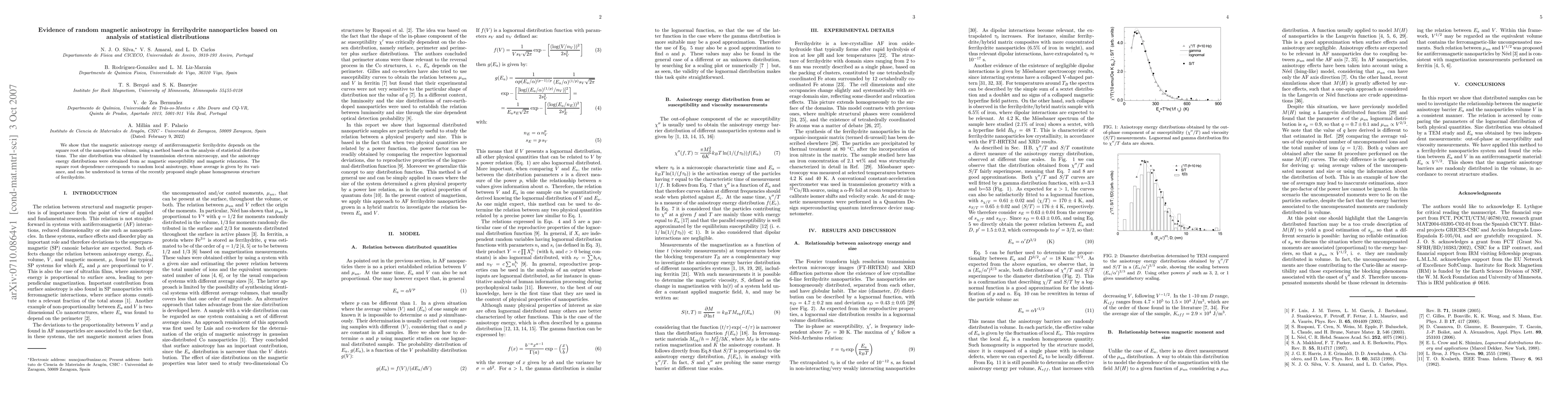 This study reveals that the magnetic anisotropy energy in ferrihydrite nanoparticles scales with the square root of their volume, indicating random local anisotropy. This finding is supported by statistical analysis of size and anisotropy energy distributions derived from transmission electron microscopy and ac magnetic susceptibility measurements.