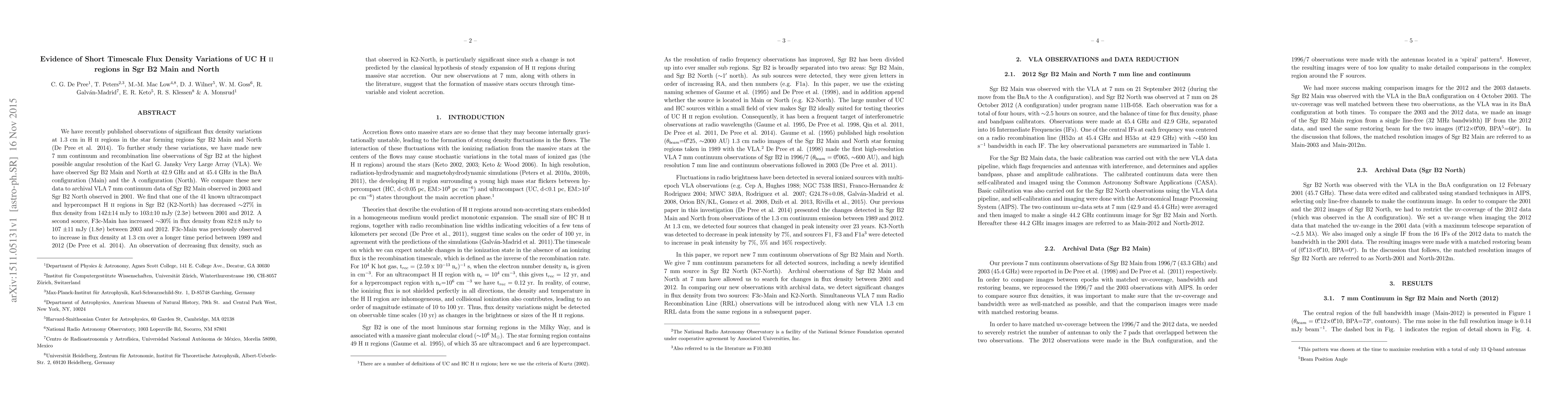 This paper reports significant short timescale flux density variations in ultracompact HII regions within Sgr B2 Main and North, using new 7 mm observations from the VLA. Notably, K2-North has decreased by 27% in flux density, while F3c-Main has increased by 30%, suggesting time-variable and violent accretion processes in massive star formation.