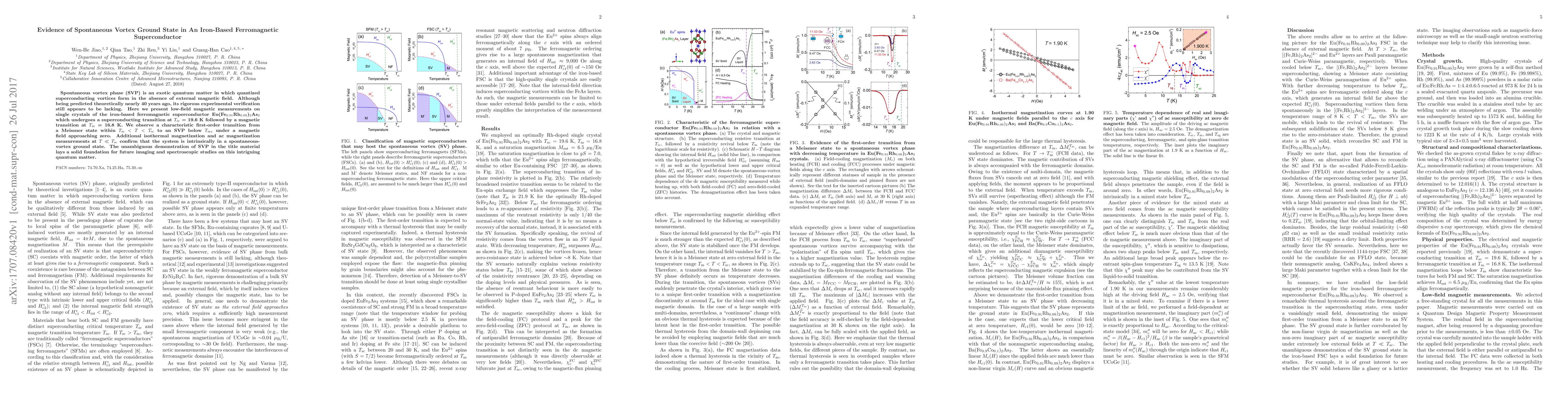 This study demonstrates the first-ever experimental verification of a spontaneous vortex phase (SVP) in the iron-based ferromagnetic superconductor Eu(Fe$_{0.91}$Rh$_{0.09}$)$_{2}$As$_{2}$, showing a transition to an SVP below a magnetic transition temperature without an external magnetic field. This finding provides a foundation for future research into this exotic quantum state.