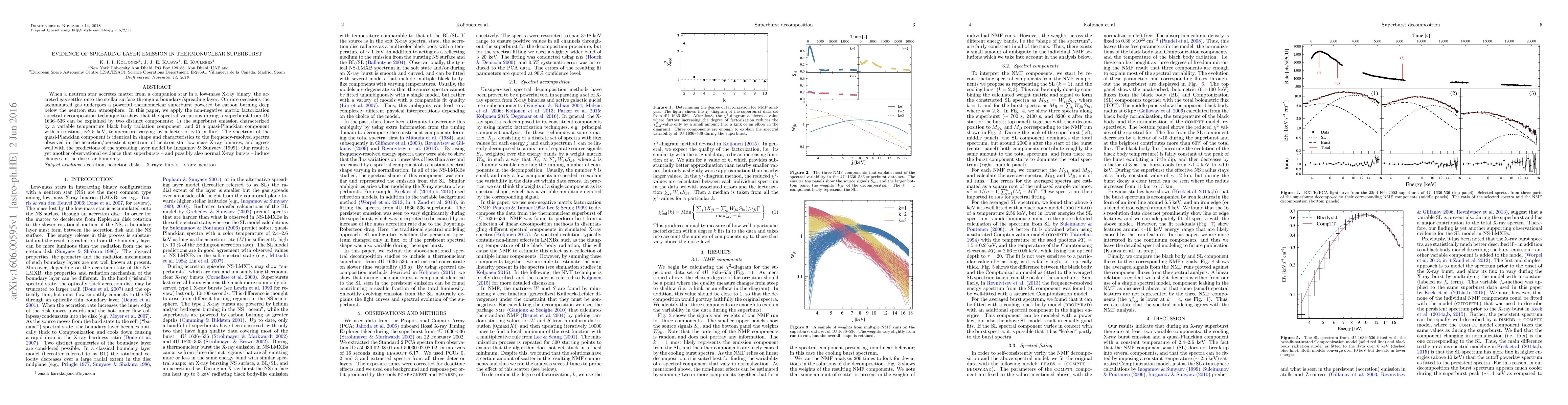 When a neutron star accretes matter from a companion star in a low-mass X-ray binary, the accreted gas settles onto the stellar surface through a boundary/spreading layer. On rare occasions the accumulated gas undergoes a powerful thermonuclear superburst powered by carbon burning deep below the neutron star atmosphere. In this paper, we apply the non-negative matrix factorization spectral decomposition technique to show that the spectral variations during a superburst from 4U 1636-536 can be explained by two distinct components: 1) the superburst emission characterized by a variable temperature black body radiation component, and 2) a quasi-Planckian component with a constant, $\sim$2.5 keV, temperature varying by a factor of $\sim$15 in flux. The spectrum of the quasi-Planckian component is identical in shape and characteristics to the frequency-resolved spectra observed in the accretion/persistent spectrum of neutron star low-mass X-ray binaries, and agrees well with the predictions of the spreading layer model by Inogamov & Sunyaev (1999). Our result is yet another observational evidence that superbursts - and possibly also normal X-ray bursts - induce changes in the disc-star boundary.