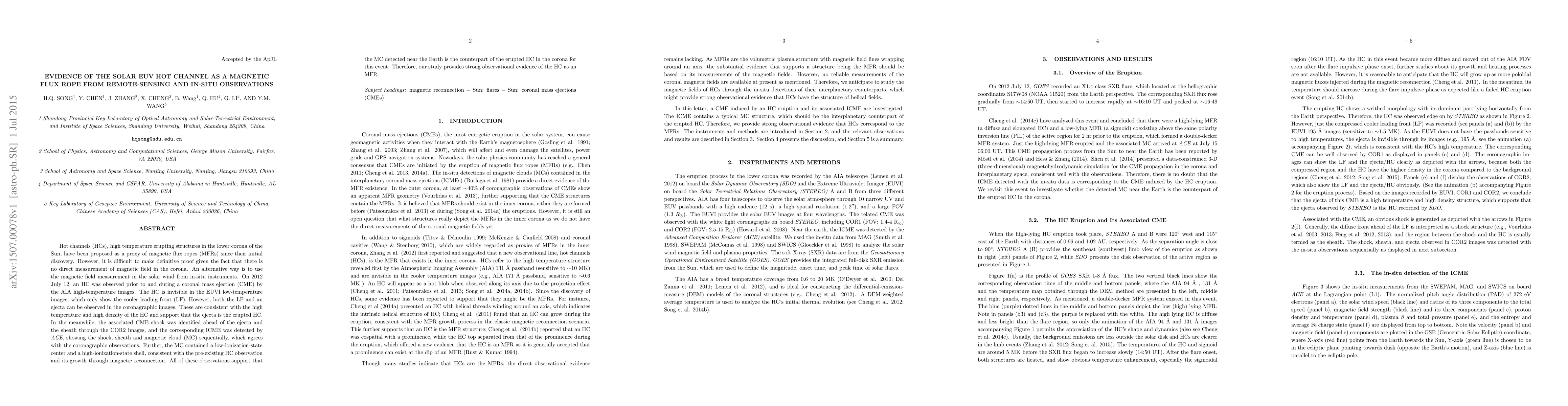 Hot channels (HCs), high temperature erupting structures in the lower corona of the Sun, have been proposed as a proxy of magnetic flux ropes (MFRs) since their initial discovery. However, it is difficult to make definitive proof given the fact that there is no direct measurement of magnetic field in the corona. An alternative way is to use the magnetic field measurement in the solar wind from in-situ instruments. On 2012 July 12, an HC was observed prior to and during a coronal mass ejection (CME) by the AIA high-temperature images. The HC is invisible in the EUVI low-temperature images, which only show the cooler leading front (LF). However, both the LF and an ejecta can be observed in the coronagraphic images. These are consistent with the high temperature and high density of the HC and support that the ejecta is the erupted HC. In the meanwhile, the associated CME shock was identified ahead of the ejecta and the sheath through the COR2 images, and the corresponding ICME was detected by \textit{ACE}, showing the shock, sheath and magnetic cloud (MC) sequentially, which agrees with the coronagraphic observations. Further, the MC contained a low-ionization-state center and a high-ionization-state shell, consistent with the pre-existing HC observation and its growth through magnetic reconnection. All of these observations support that the MC detected near the Earth is the counterpart of the erupted HC in the corona for this event. Therefore, our study provides strong observational evidence of the HC as an MFR.