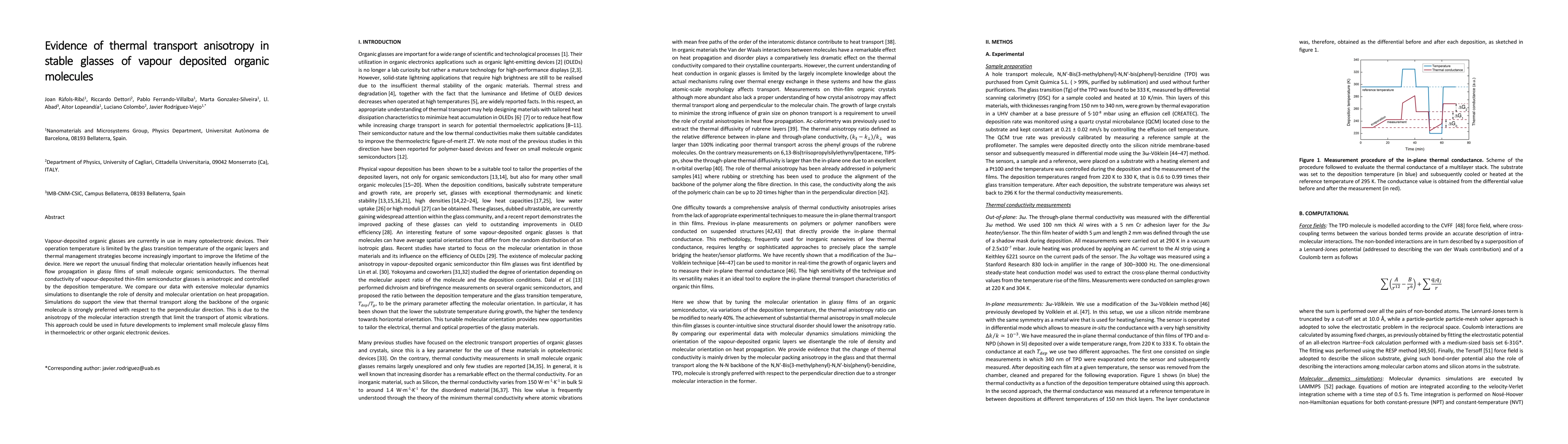 This study reveals that the thermal conductivity of vapour-deposited organic glasses is anisotropic, significantly influenced by molecular orientation and deposition temperature. Molecular dynamics simulations confirm that heat transport is preferentially aligned along the organic molecule's backbone, suggesting potential for optimizing thermal management in optoelectronic devices.