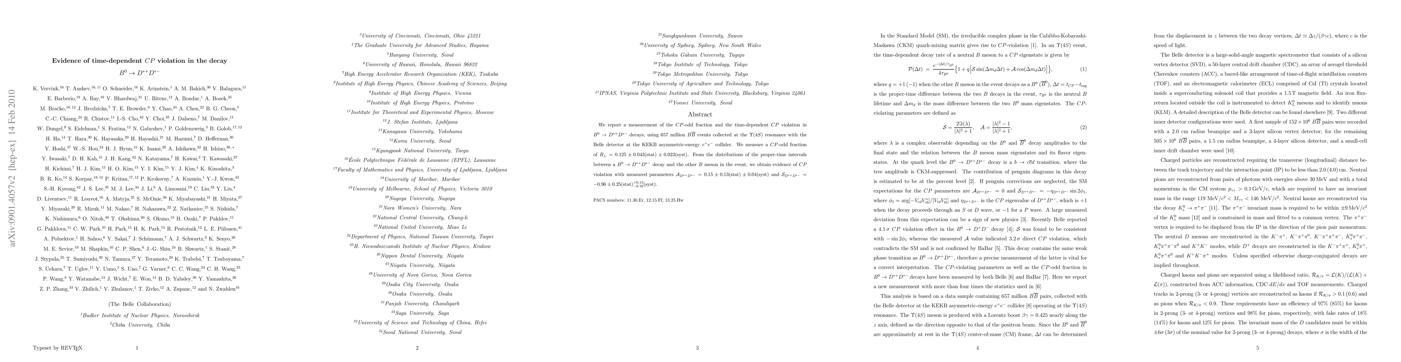 Researchers at Belle detector measure time-dependent CP violation in B0 to D*+D*- decays, finding evidence of asymmetry with a measured fraction of 0.125.