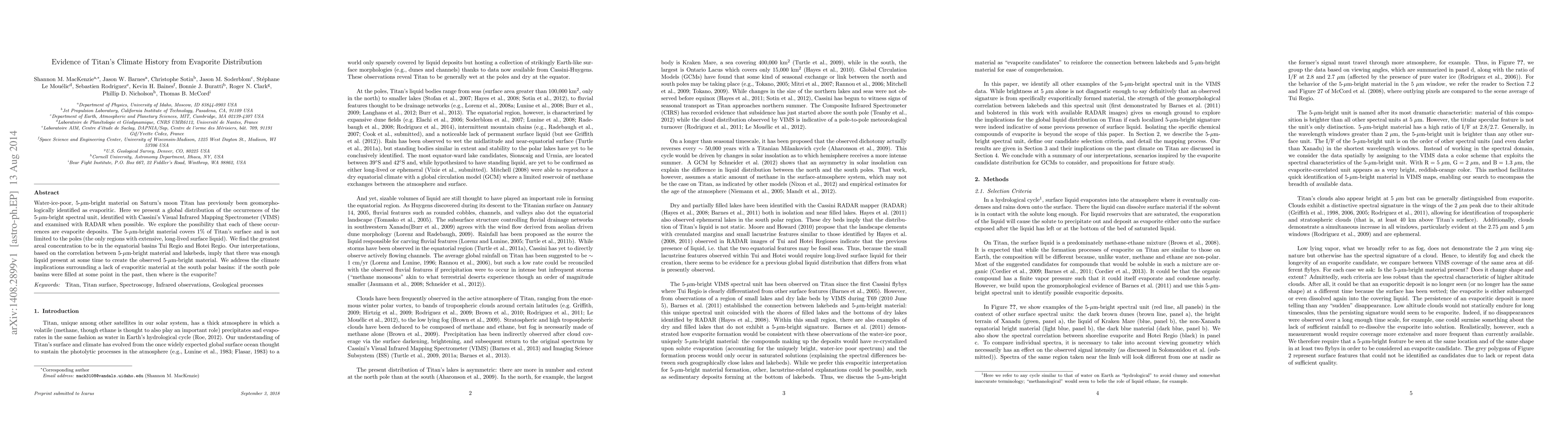 Research on Saturn's moon Titan reveals that a 5-$μ$m-bright material, previously identified as evaporitic, covers 1% of the surface, suggesting that liquid water may have existed in equatorial regions at some point.