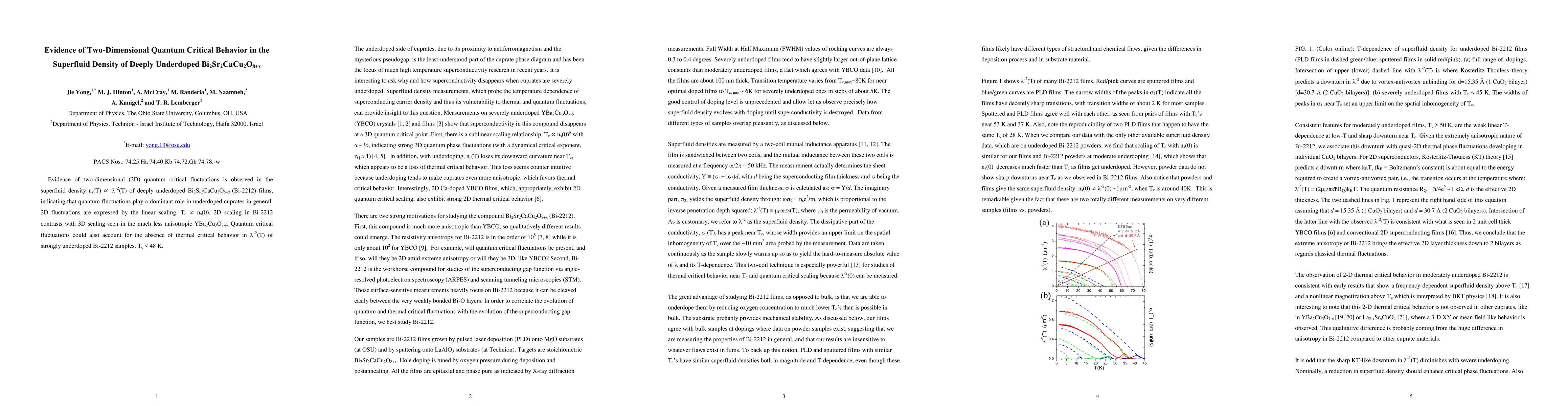 This paper reports evidence of two-dimensional quantum critical behavior in the superfluid density of deeply underdoped Bi2Sr2CaCu2O8+x, indicating dominant quantum fluctuations in underdoped cuprates. The observed linear scaling Tc ∝ ns(0) contrasts with three-dimensional scaling in less anisotropic YBa2Cu3O7-x, suggesting unique critical behavior in Bi-2212.