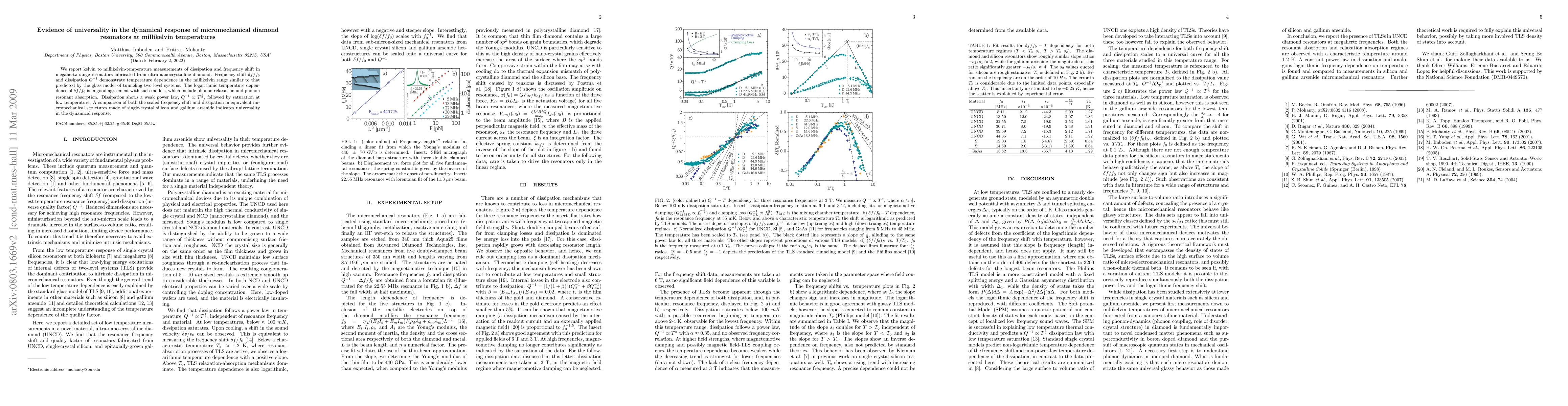 This study investigates the temperature-dependent behavior of micromechanical diamond resonators at millikelvin temperatures, finding that their frequency shift and dissipation follow predictions from the glass model of tunneling two-level systems. The results show universality in the dynamical response across different materials, including diamond, silicon, and gallium arsenide.