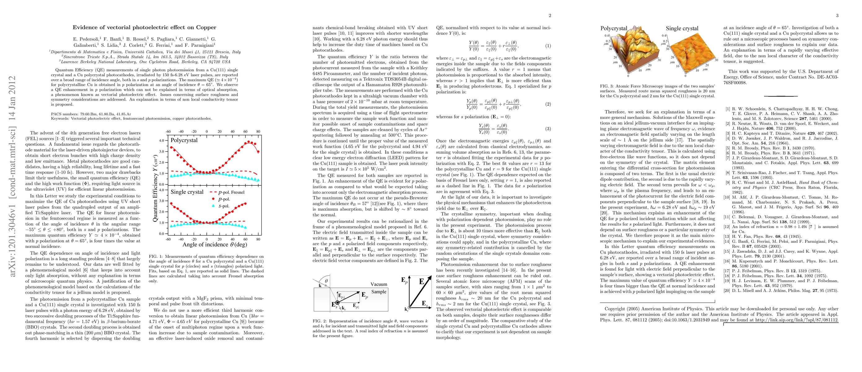Quantum Efficiency (QE) measurements of single photon photoemission from a Cu(111) single crystal and a Cu polycrystal photocathodes, irradiated by 150 fs-6.28 eV laser pulses, are reported over a broad range of incidence angle, both in s and p polarizations. The maximum QE (\simeq 4\times10^{-4}) for polycrystalline Cu is obtained in p polarization at an angle of incidence {\theta} = 65deg. We observe a QE enhancement in p polarization which can not be explained in terms of optical absorption, a phenomenon known as vectorial photoelectric effect. Issues concerning surface roughness and symmetry considerations are addressed. An explanation in terms of non local conductivity tensor is proposed.
