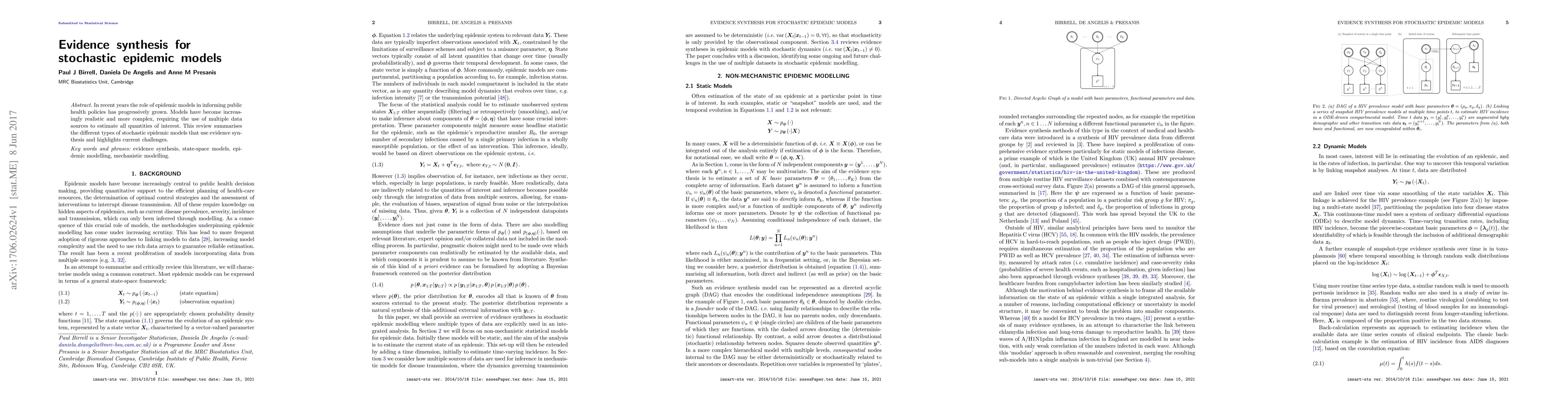 The paper provides a comprehensive review of stochastic epidemic models that incorporate evidence synthesis, discussing various modeling techniques and their applications in different epidemiological contexts.