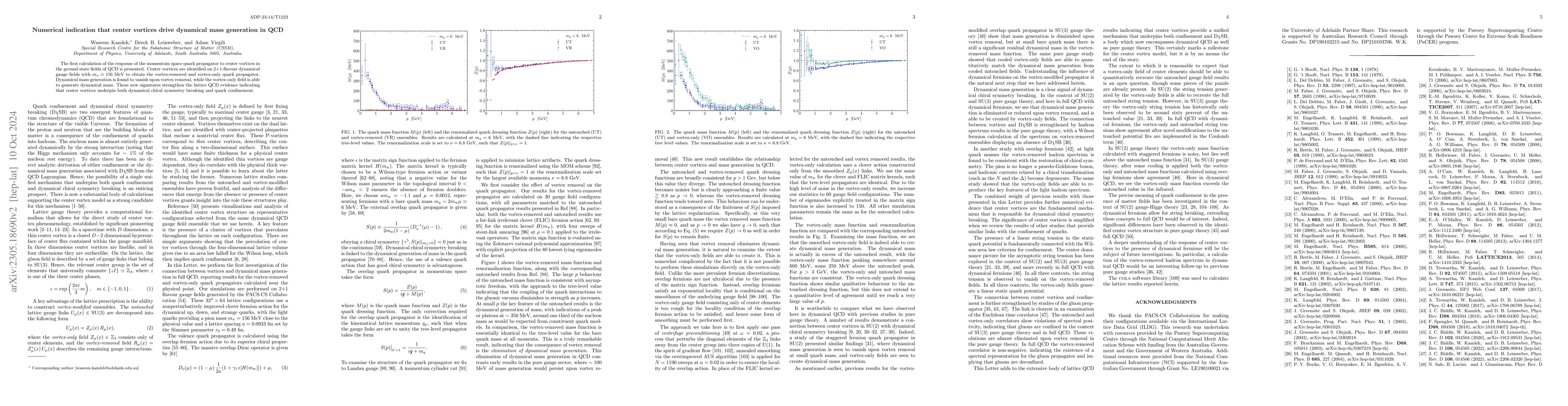Summary: This study demonstrates that center vortices in QCD dynamically generate mass for quarks, as the presence of these vortices leads to dynamical mass generation, which vanishes when they are removed. This supports the role of center vortices in both chiral symmetry breaking and quark confinement.