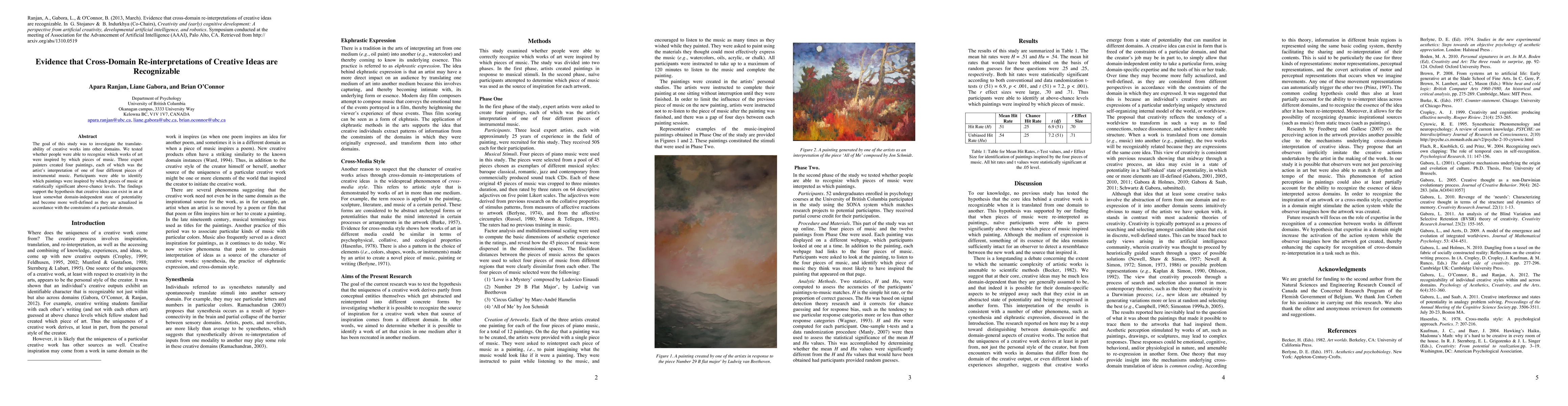 The goal of this study was to investigate the translate-ability of creative works into other domains. We tested whether people were able to recognize which works of art were inspired by which pieces of music. Three expert painters created four paintings, each of which was the artist's interpretation of one of four different pieces of instrumental music. Participants were able to identify which paintings were inspired by which pieces of music at statistically significant above-chance levels. The findings support the hypothesis that creative ideas can exist in an at least somewhat domain-independent state of potentiality and become more well-defined as they are actualized in accordance with the constraints of a particular domain.
