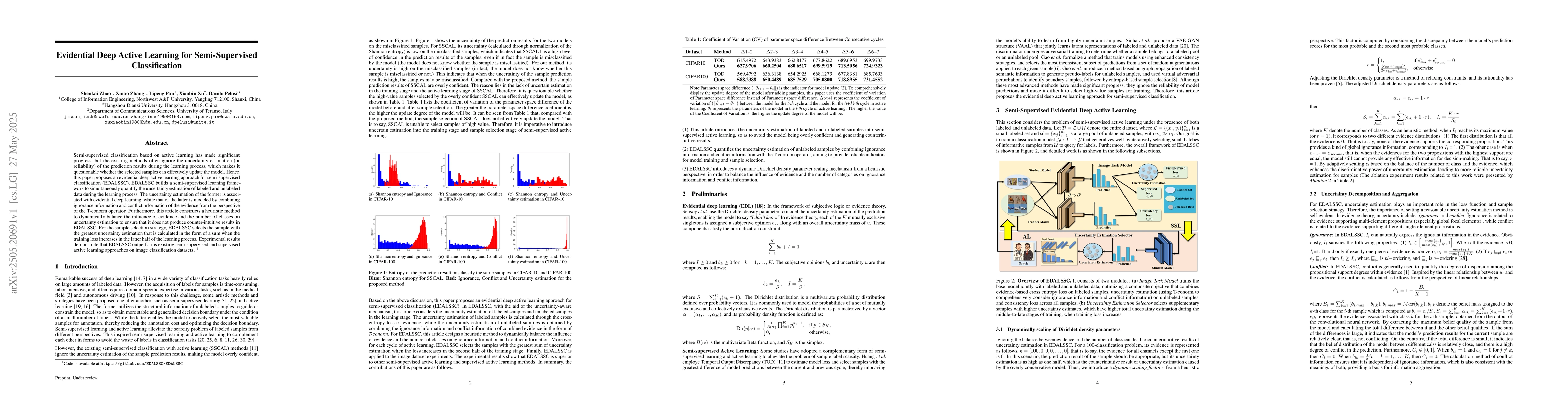 This paper proposes Evidential Deep Active Learning for Semi-Supervised Classification (EDALSSC), an approach that balances uncertainty estimation of labeled and unlabeled data to improve active learning performance in image classification datasets.