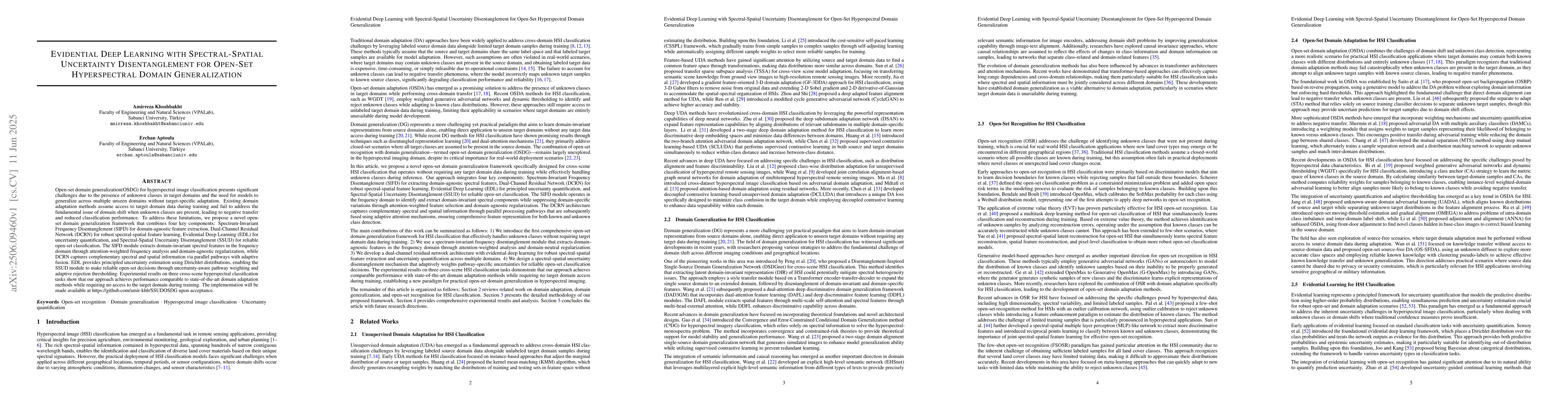 The use of deep learning techniques combined with spectral-spatial uncertainty disentanglement provides a unique approach to addressing the challenges of open-set hyperspectral image classification.