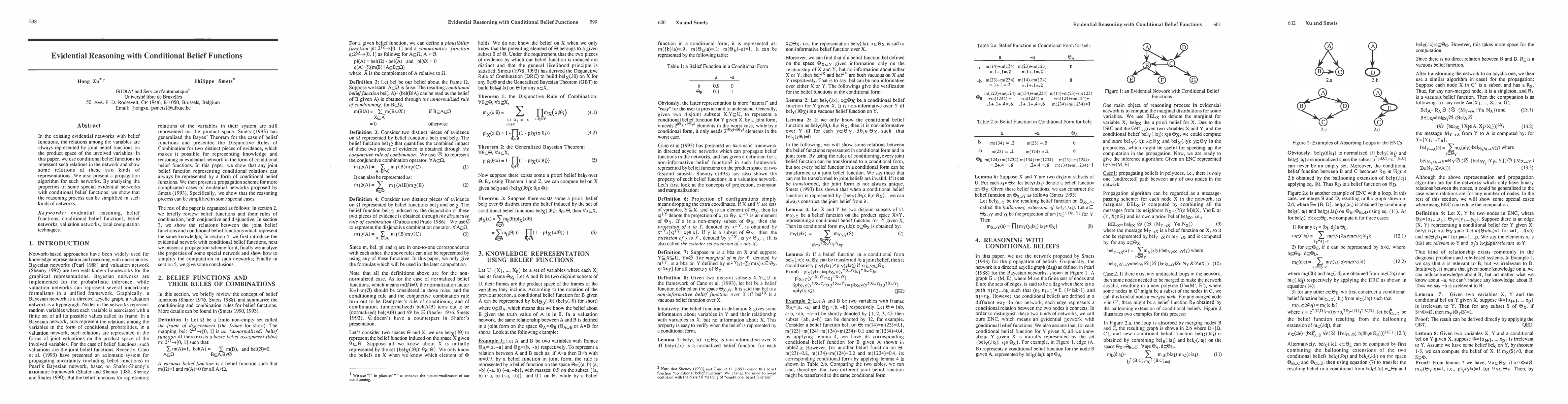 This paper proposes using conditional belief functions to represent relationships in evidential networks, contrasting with traditional joint belief functions. It introduces a propagation algorithm and demonstrates that reasoning can be simplified in networks utilizing conditional belief functions.