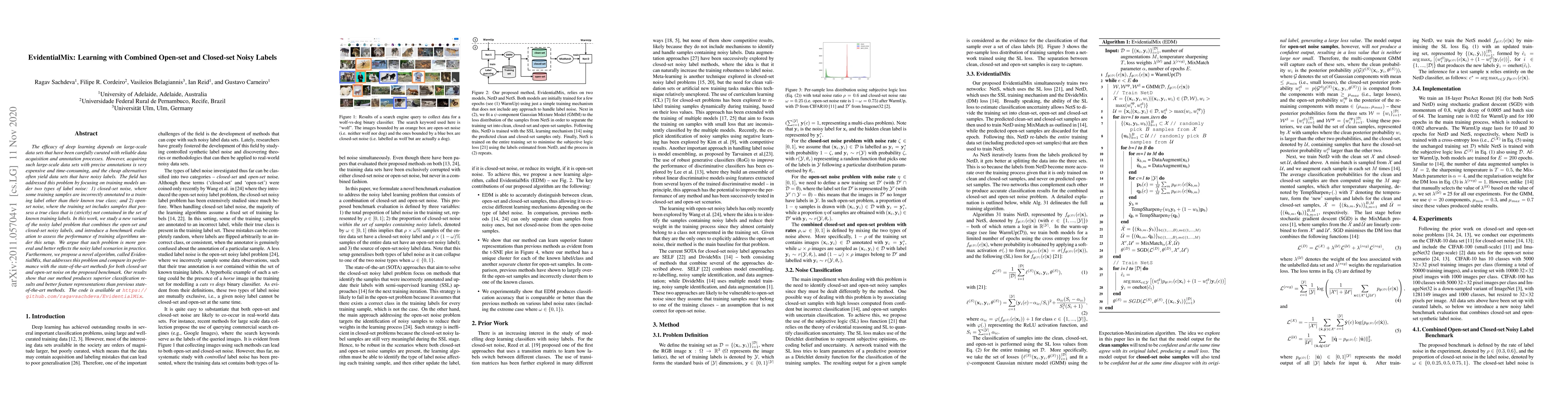 This paper introduces EvidentialMix, a novel algorithm designed to tackle the combined open-set and closed-set noisy label problem in deep learning, which better reflects real-world scenarios. The proposed method outperforms existing state-of-the-art techniques in both classification accuracy and feature representation.