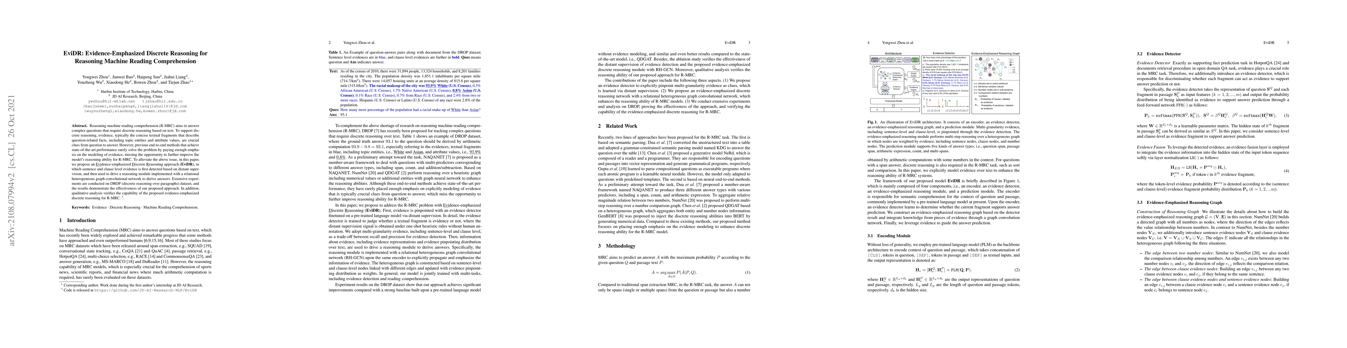 The paper proposes EviDR, an evidence-emphasized discrete reasoning approach for reading comprehension, which detects sentence and clause level evidence to drive a reasoning module for answering complex questions. Experiments on the DROP dataset show improved performance and qualitative analysis confirms the method's effectiveness.