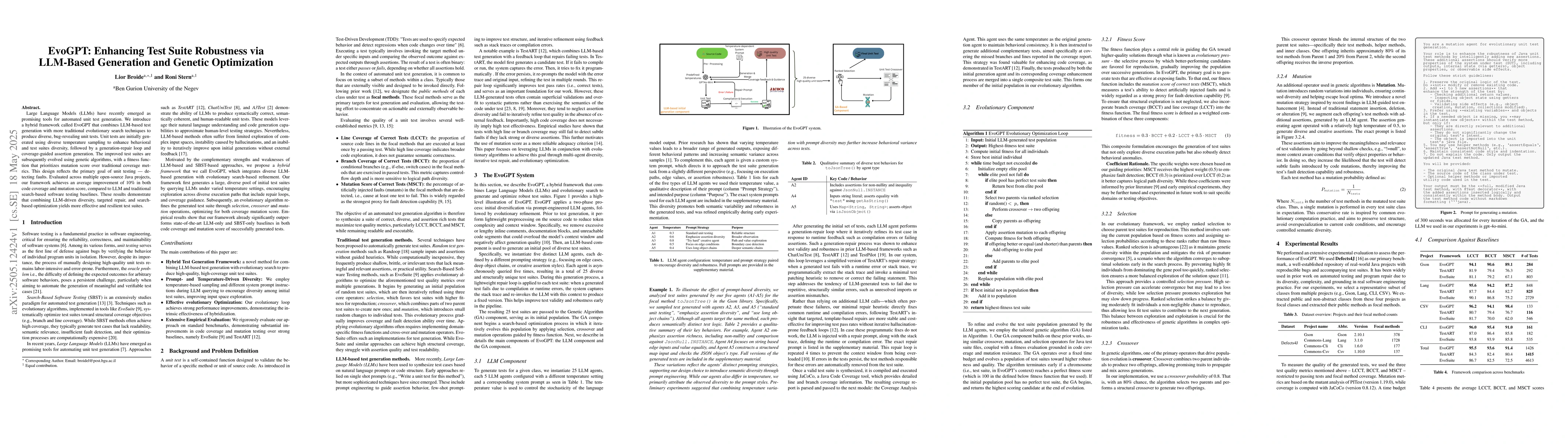 EvoGPT improves unit test generation with LLM-based diversity and evolutionary optimization, achieving 10% increase in code coverage and mutation score compared to traditional methods.