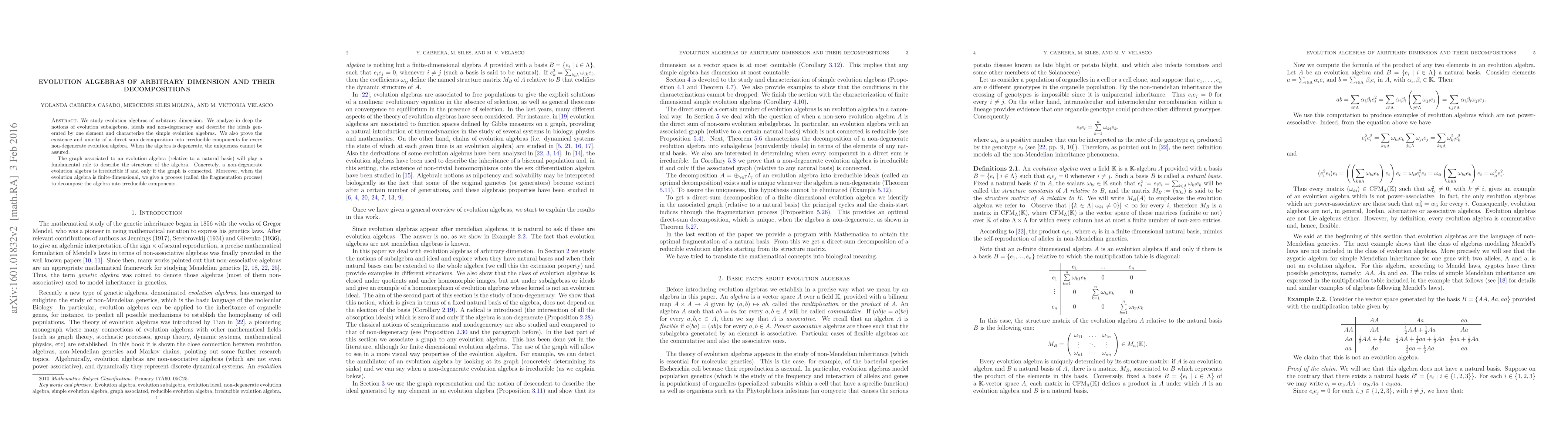This paper studies evolution algebras of arbitrary dimension, exploring their subalgebras, ideals, non-degeneracy, and decompositions into irreducible components, providing a process for finite-dimensional algebras to break them down.