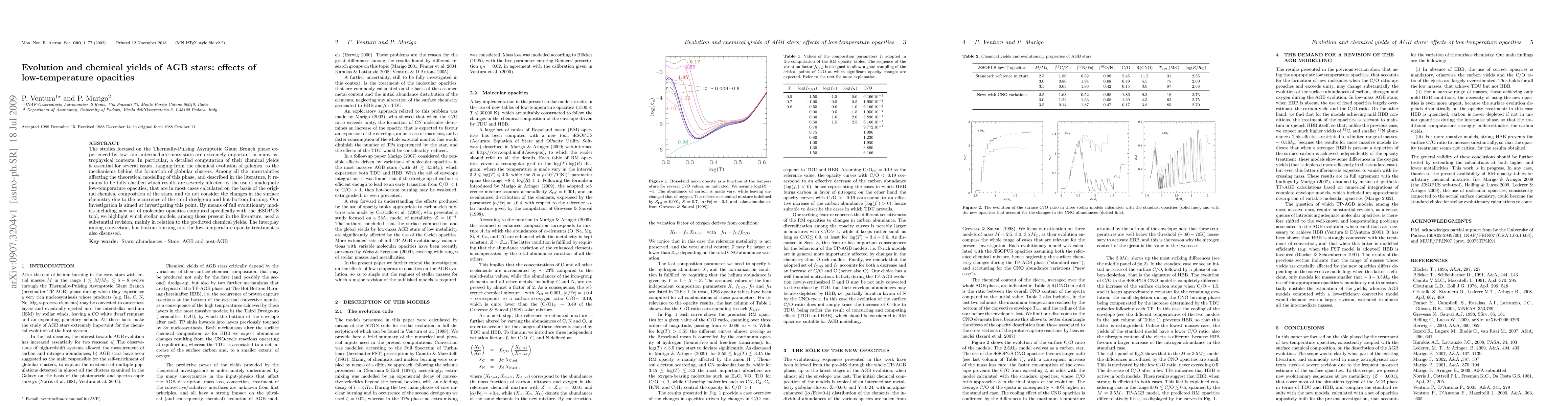 This paper explores the impact of low-temperature opacities on the chemical yields of low- and intermediate-mass stars during their Thermally-Pulsing Asymptotic Giant Branch phase. It identifies which models require revision due to inadequate opacities, emphasizing the need for accurate chemical yield computations for understanding galactic chemical evolution and globular cluster formation.