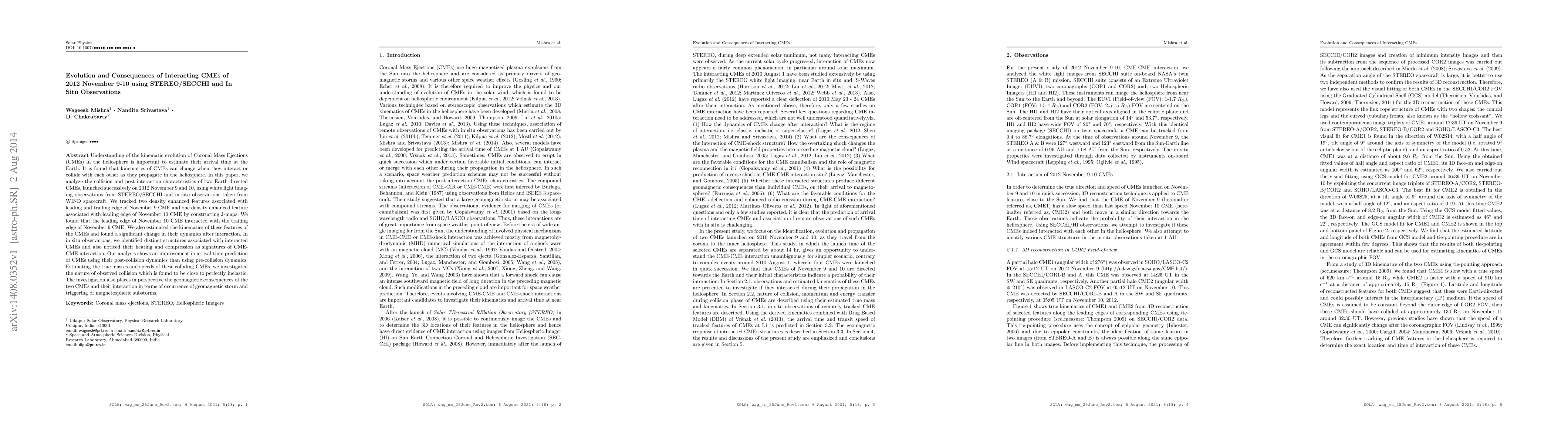 Two Coronal Mass Ejections (CMEs) collided in space, causing a significant change in their dynamics and leading to better predictions of their arrival time at Earth.