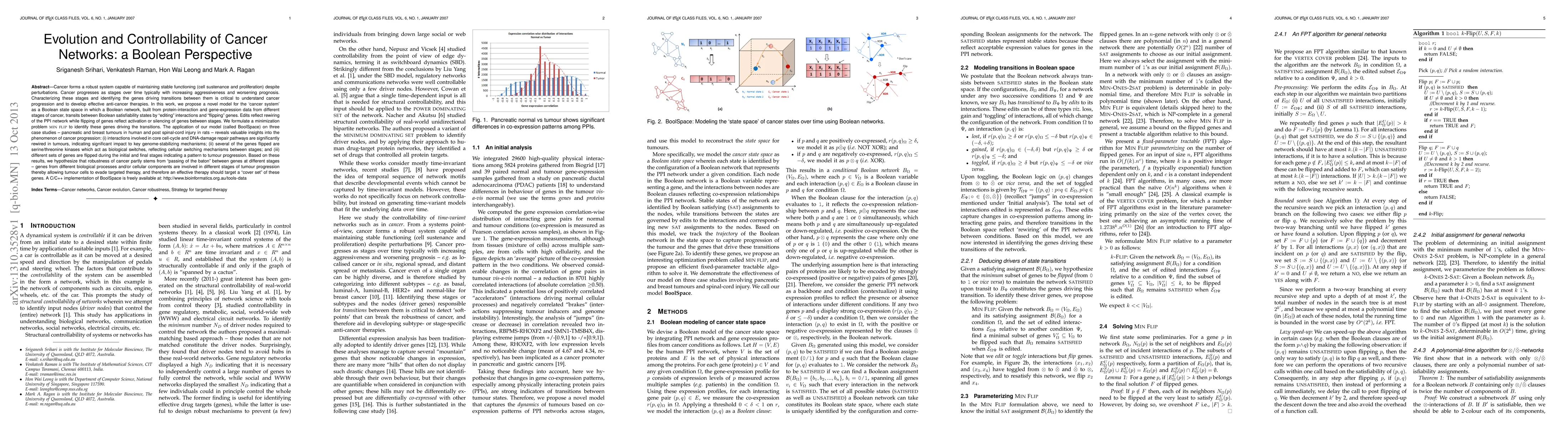 Cancer forms a robust system and progresses as stages over time typically with increasing aggressiveness and worsening prognosis. Characterizing these stages and identifying the genes driving transitions between them is critical to understand cancer progression and to develop effective anti-cancer therapies. Here, we propose a novel model of the 'cancer system' as a Boolean state space in which a Boolean network, built from protein interaction and gene-expression data from different stages of cancer, transits between Boolean satisfiability states by "editing" interactions and "flipping" genes. The application of our model (called BoolSpace) on three case studies - pancreatic and breast tumours in human and post spinal-cord injury in rats - reveals valuable insights into the phenomenon of cancer progression. In particular, we notice that several of the genes flipped are serine/threonine kinases which act as natural cellular switches and that different sets of genes are flipped during the initial and final stages indicating a pattern to tumour progression. We hypothesize that robustness of cancer partly stems from "passing of the baton" between genes at different stages, and therefore an effective therapy should target a "cover set" of these genes. A C/C++ implementation of BoolSpace is freely available at: http://www.bioinformatics.org.au/tools-data