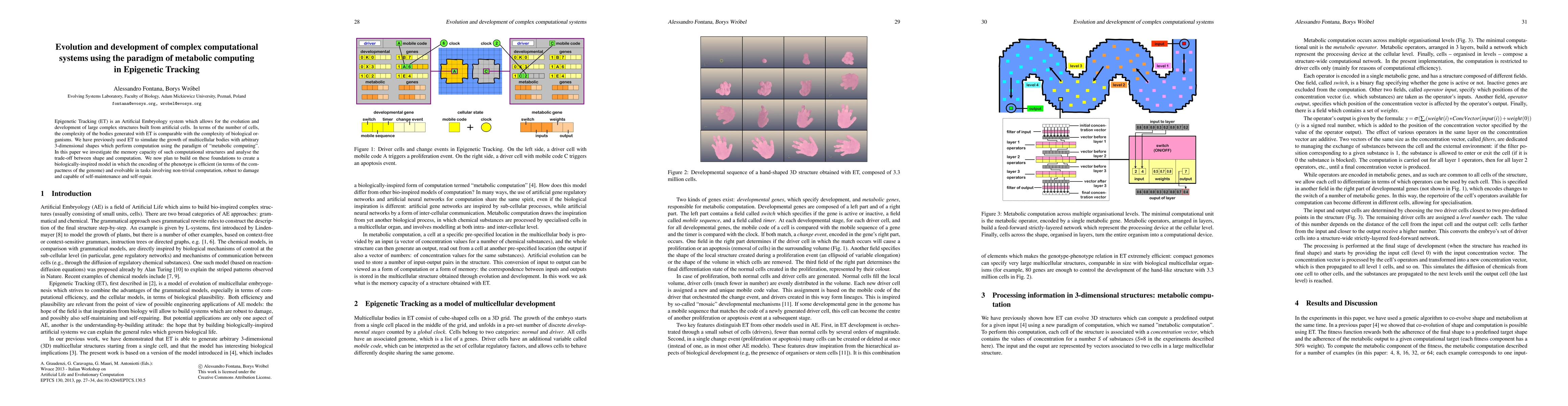 Epigenetic Tracking (ET) is an Artificial Embryology system which allows for the evolution and development of large complex structures built from artificial cells. In terms of the number of cells, the complexity of the bodies generated with ET is comparable with the complexity of biological organisms. We have previously used ET to simulate the growth of multicellular bodies with arbitrary 3-dimensional shapes which perform computation using the paradigm of "metabolic computing". In this paper we investigate the memory capacity of such computational structures and analyse the trade-off between shape and computation. We now plan to build on these foundations to create a biologically-inspired model in which the encoding of the phenotype is efficient (in terms of the compactness of the genome) and evolvable in tasks involving non-trivial computation, robust to damage and capable of self-maintenance and self-repair.