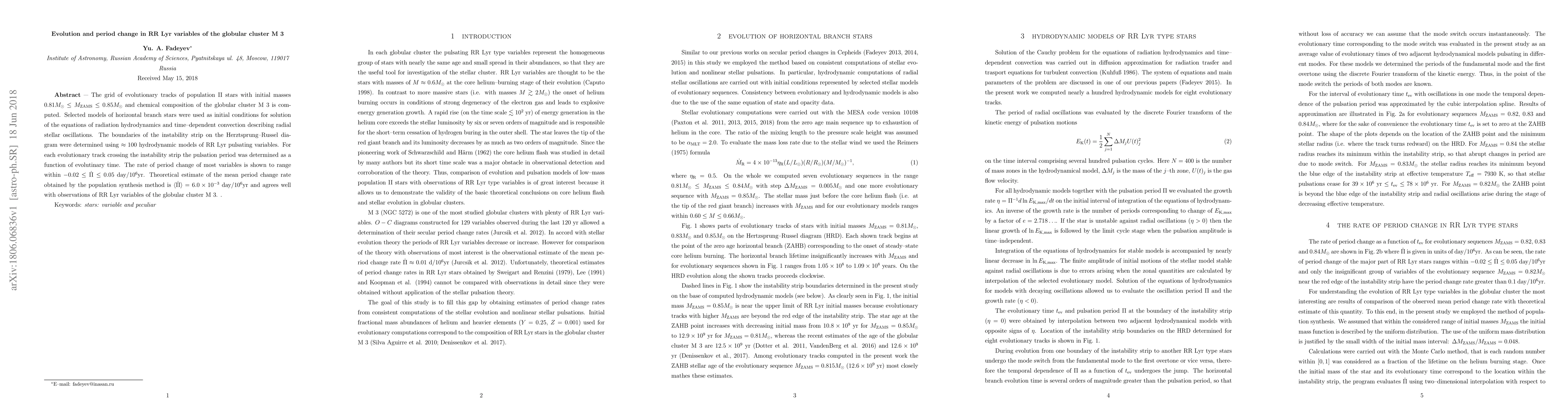 This study investigates the evolution and period change in RR Lyr variables within the globular cluster M 3, using hydrodynamic models and population synthesis to determine the pulsation period and its rate of change, finding a theoretical mean period change rate that aligns with observational data.