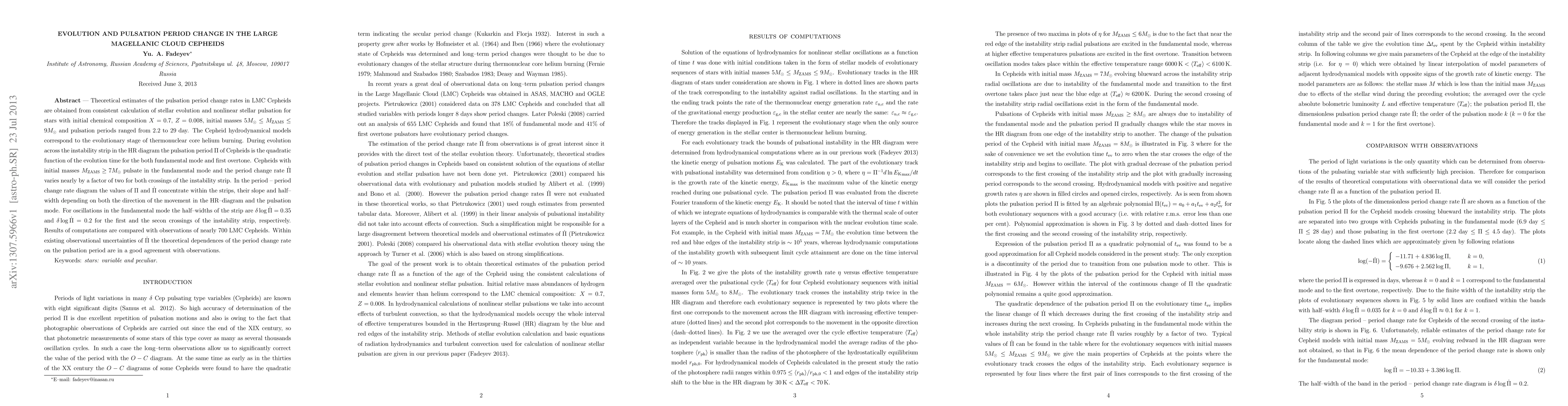 This paper investigates the evolution and pulsation period change rates of Cepheids in the Large Magellanic Cloud (LMC), using theoretical models that combine stellar evolution and nonlinear pulsation. The study finds that Cepheids' pulsation periods change quadratically with evolution time, and the period change rate varies significantly depending on the mass and mode of pulsation. The results align well with observational data of nearly 700 LMC Cepheids.
