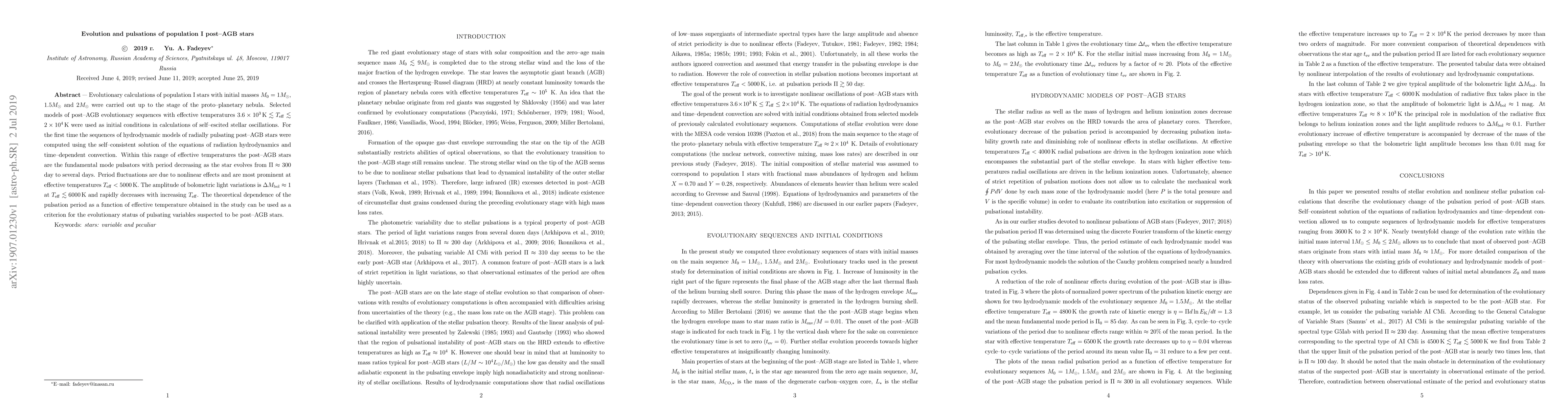 Researchers calculated evolutionary sequences of post-AGB stars, discovering they pulsate with periods decreasing as they age, and found a criterion for identifying these pulsating variables.