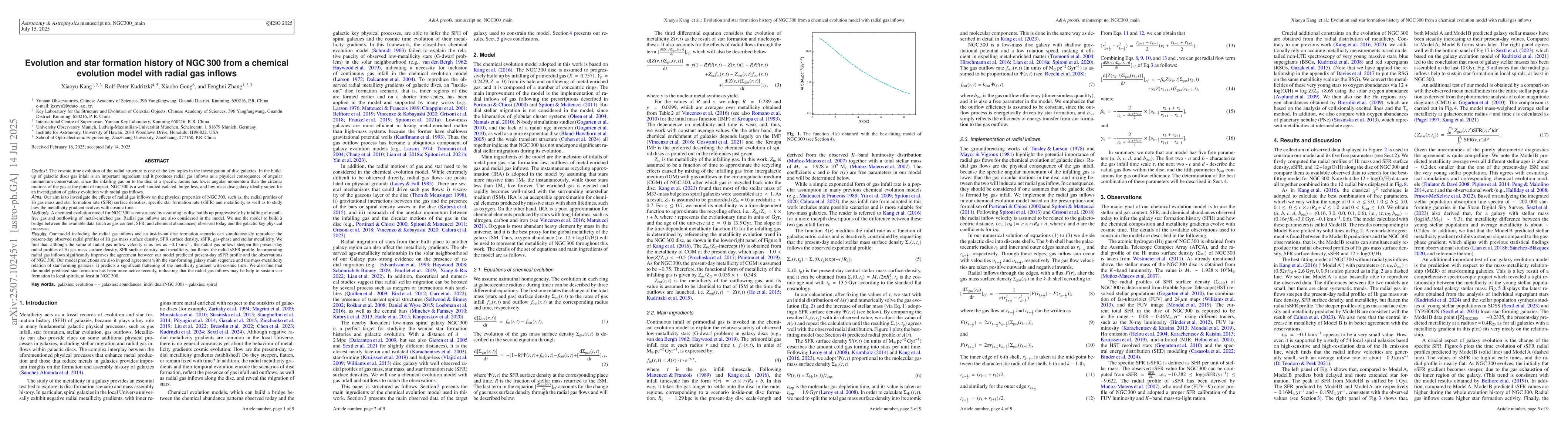 In the build-up of galactic discs gas infall is an important ingredient and it produces radial gas inflows as a physical consequence of angular momentum conservation, since the infalling gas on to the disc at a specific radius has lower angular momentum than the circular motions of the gas at the point of impact. NGC300 is a well studied isolated, bulge-less, and low-mass disc galaxy ideally suited for an investigation of galaxy evolution with radial gas inflows. To investigate the effects of radial gas inflows on the physical properties of NGC300, a chemical evolution model for NGC300 is constructed by assuming its disc builds up progressively by infalling of metall-free gas and outflowing of metal-enriched gas. Radial gas inflows are also considered in the model. Our model including the radial gas inflows and an inside-out disc formation scenario can simultaneously reproduce the present-day observed radial profiles of HI gas mass surface density, SFR surface density, sSFR, gas-phase and stellar metallicity. We find that, although the value of radial gas inflow velocity is as low as -0.1 km/s, the radial gas inflows steepen the present-day radial profiles of HI gas mass surface density, SFR surface density, and metallicity, but flatten the radial sSFR profile. Incorporating radial gas inflows significantly improves the agreement between our model predicted present-day sSFR profile and the observations of NGC300. It predicts a significant flattening of the metallicity gradient with cosmic time. We also find that the model predicted star formation has been more active recently, indicating that the radial gas inflows may be help to sustain star formation in local spirals, at least in NGC300.
